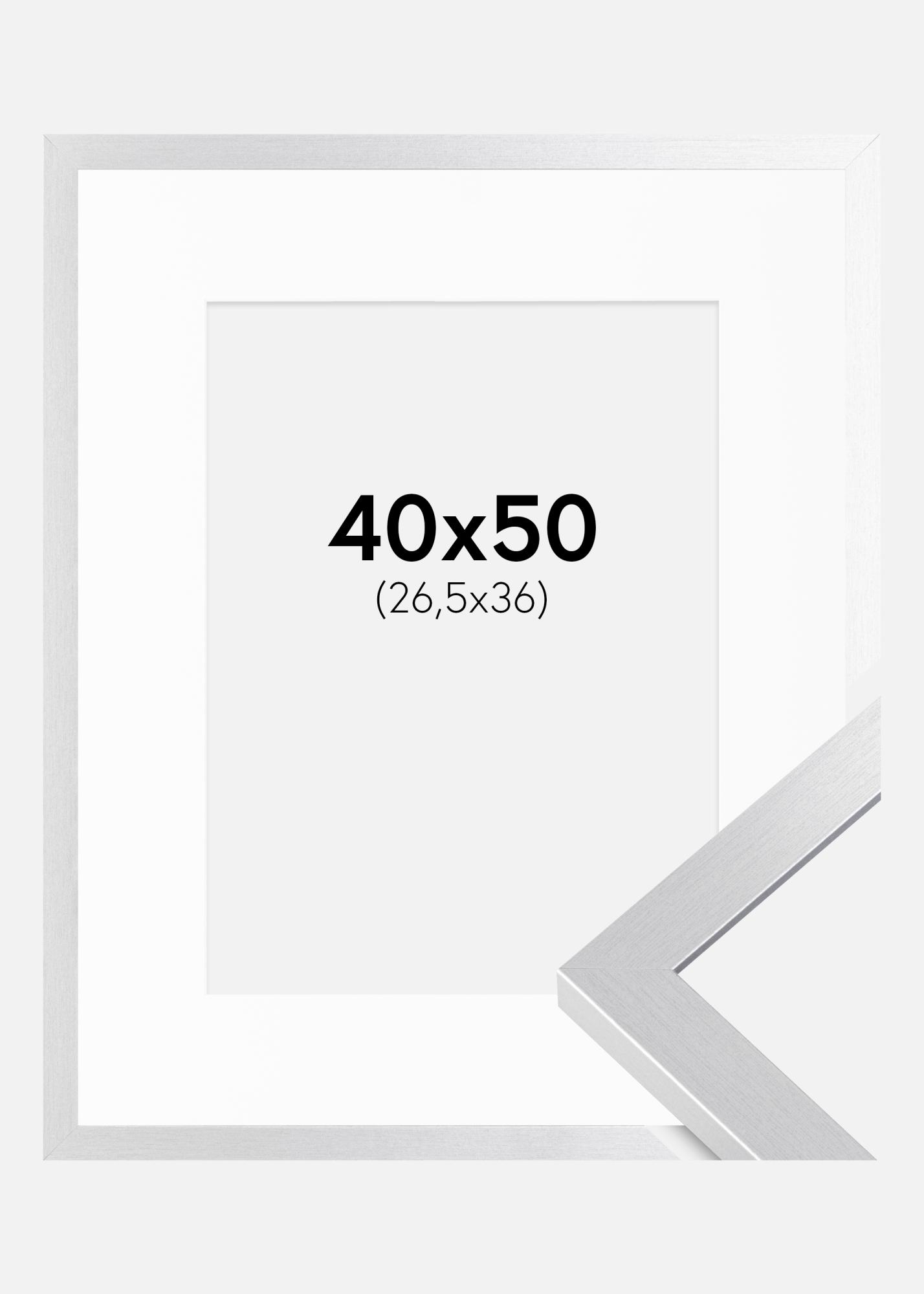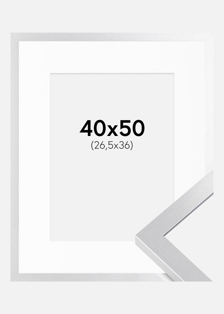 Rahmen Selection Silber 40x50 cm - Passepartout Weiß 27,5x37 cm