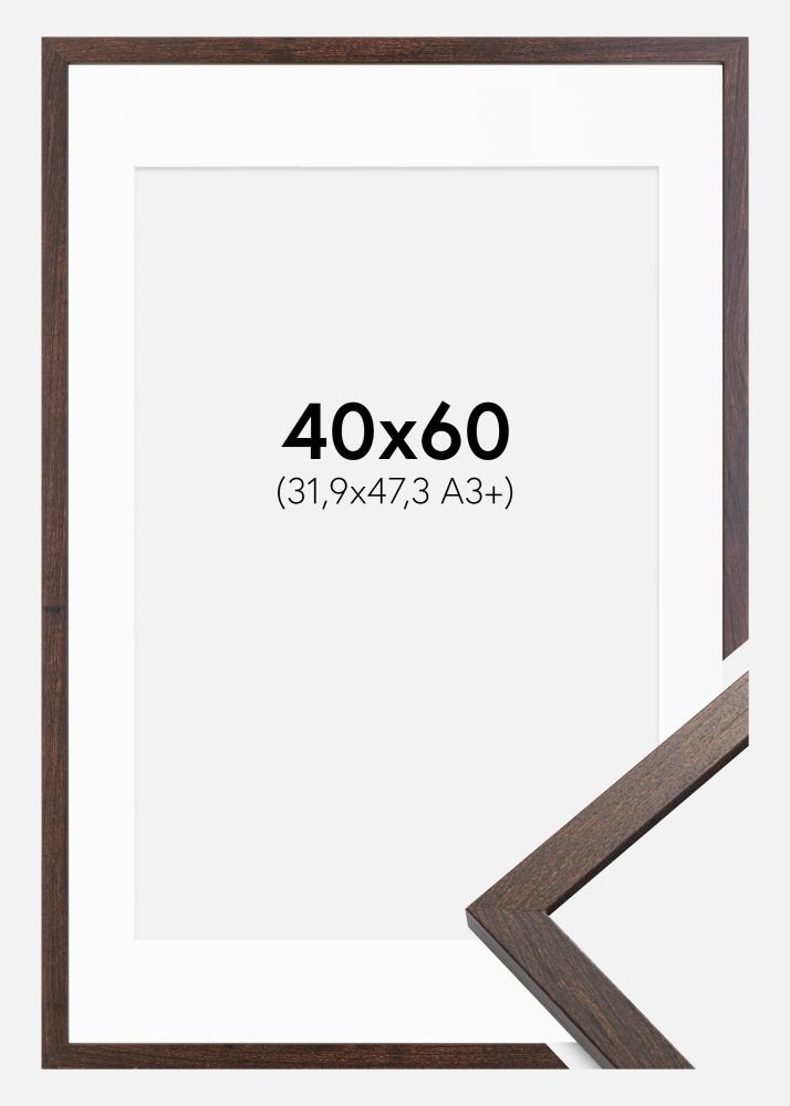 Rahmen Trendy Walnuss 40x60 cm - Passepartout Weiß 32,9x48,3 cm (A3+)
