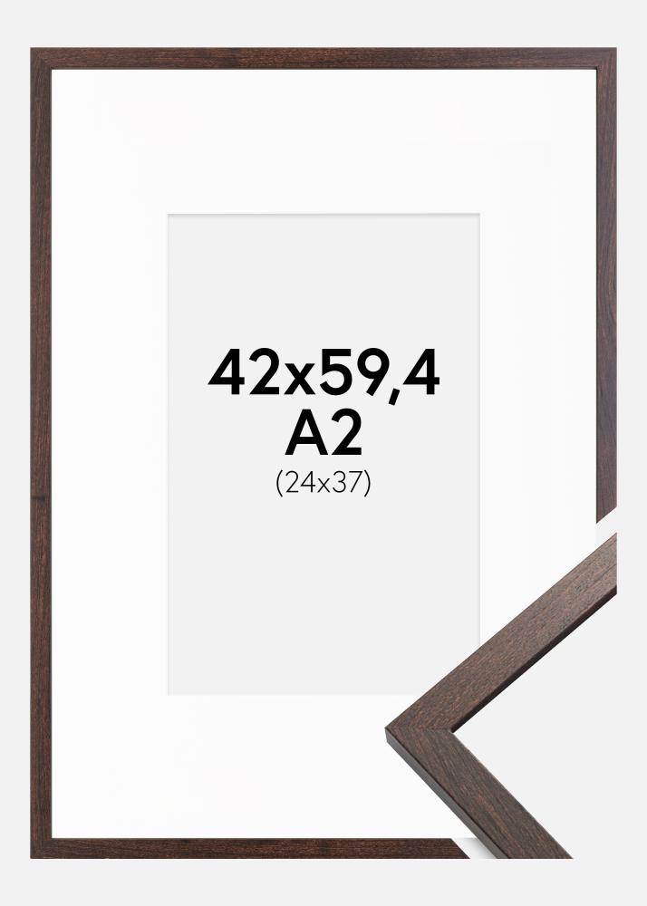 Rahmen Trendy Walnuss 42x59,4 cm (A2) - Passepartout Weiß 25x38 cm