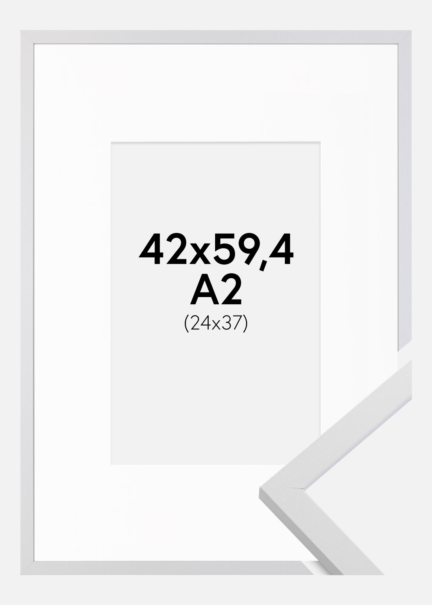 Rahmen Trendy Weiß 42x59,4 cm (A2) - Passepartout Weiß 25x38 cm