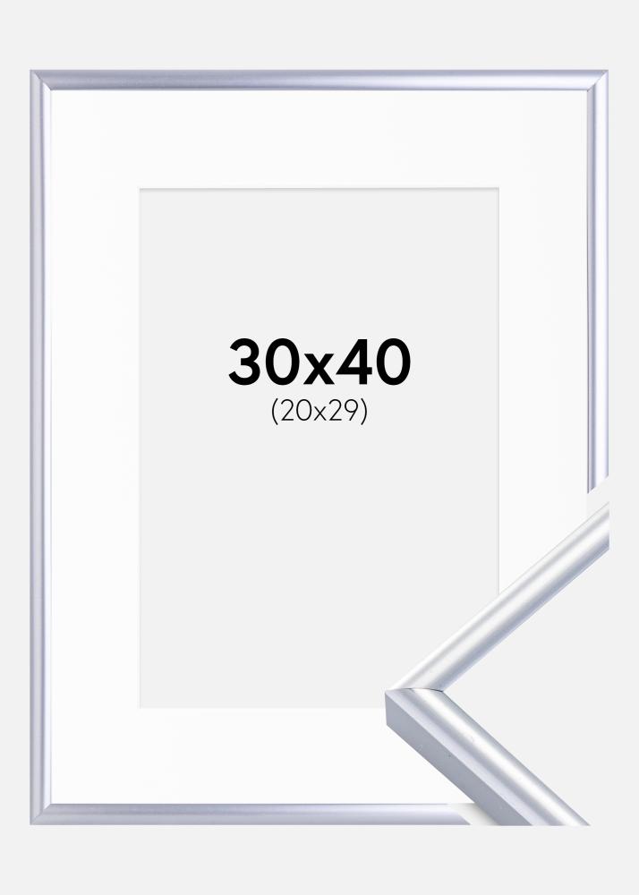 Rahmen Victoria Silber 30x40 cm - Passepartout Weiß 21x30 cm