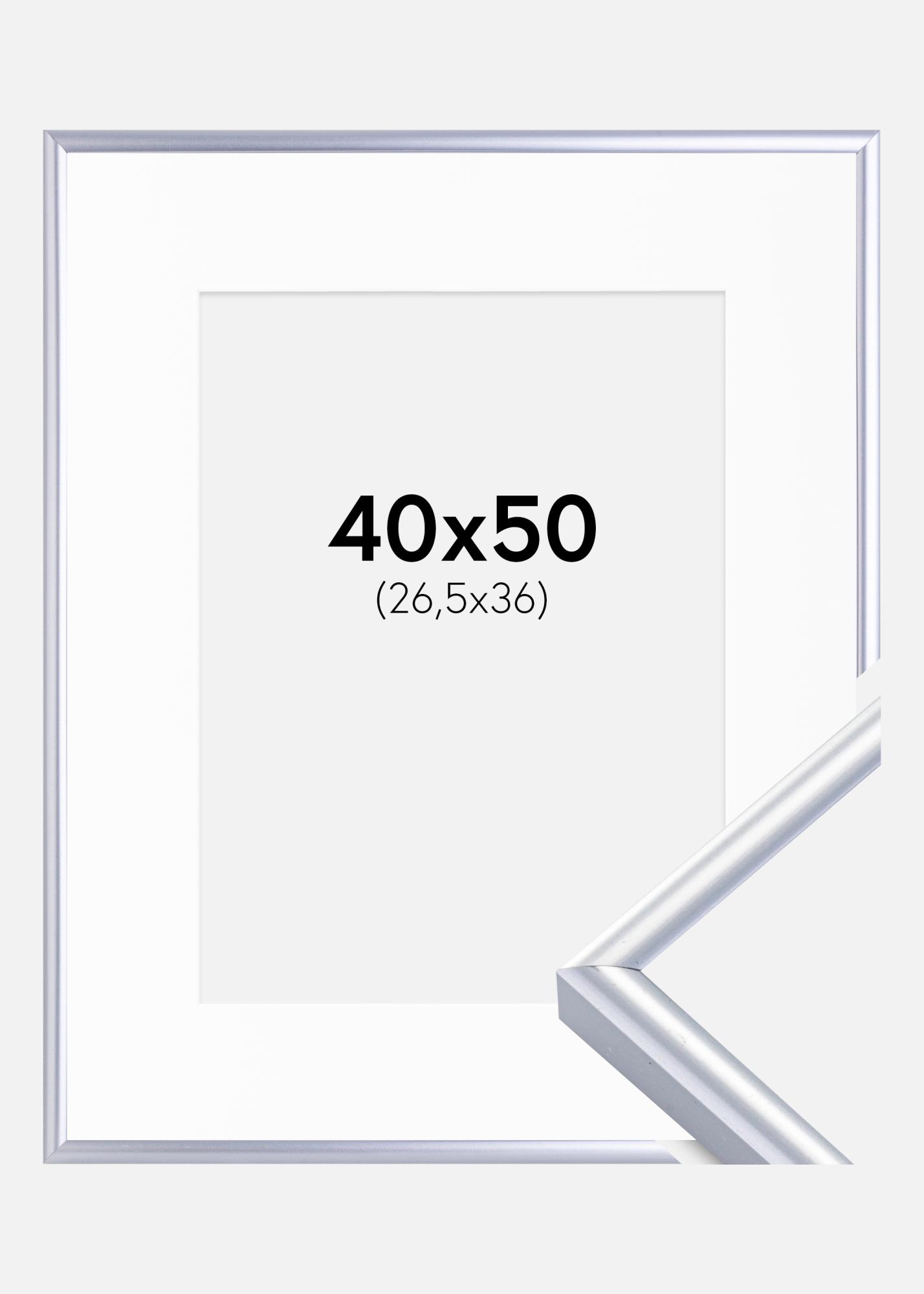 Rahmen Victoria Silber 40x50 cm - Passepartout Weiß 27,5x37 cm