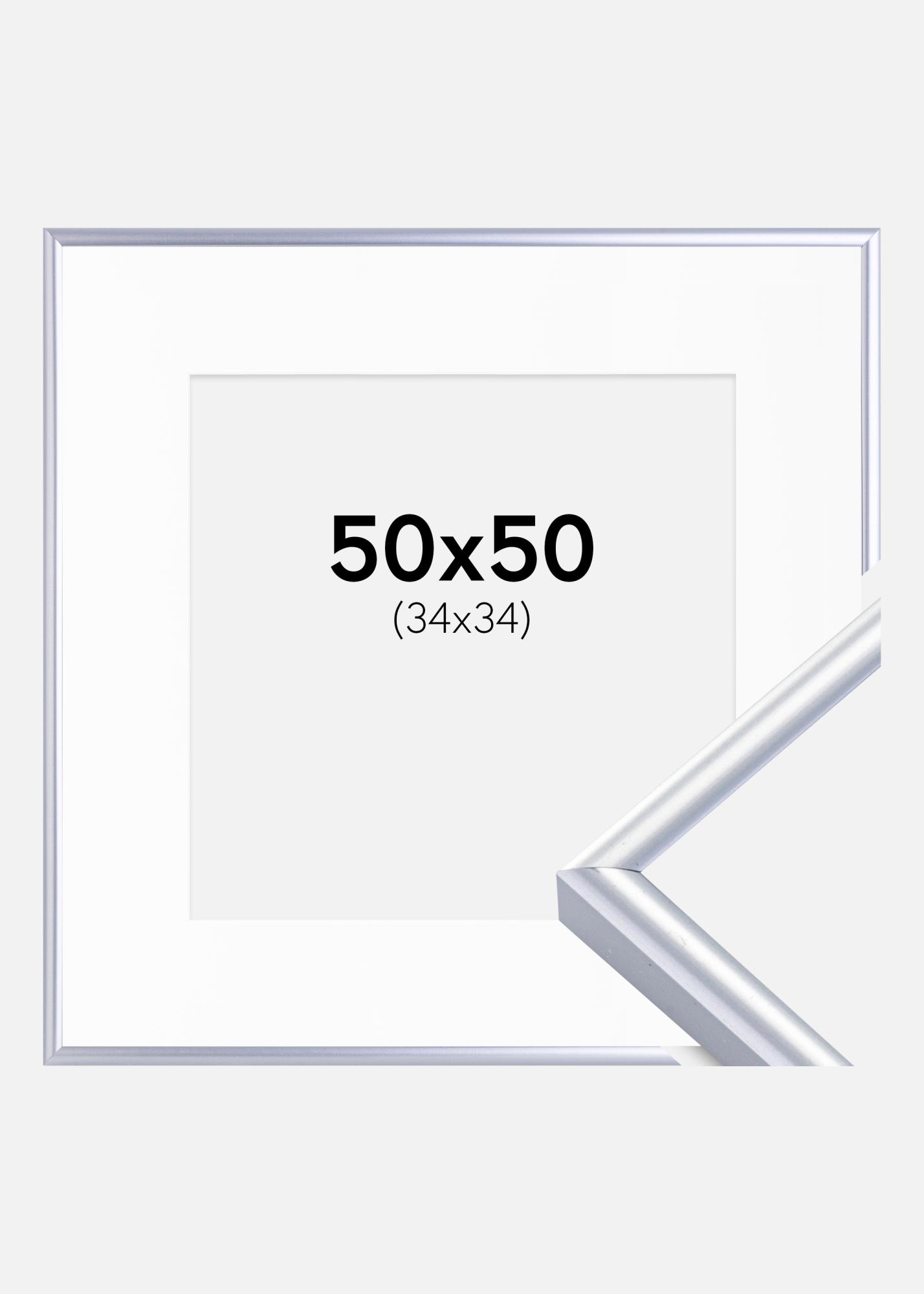Rahmen Victoria Silber 50x50 cm - Passepartout Weiß 35x35 cm
