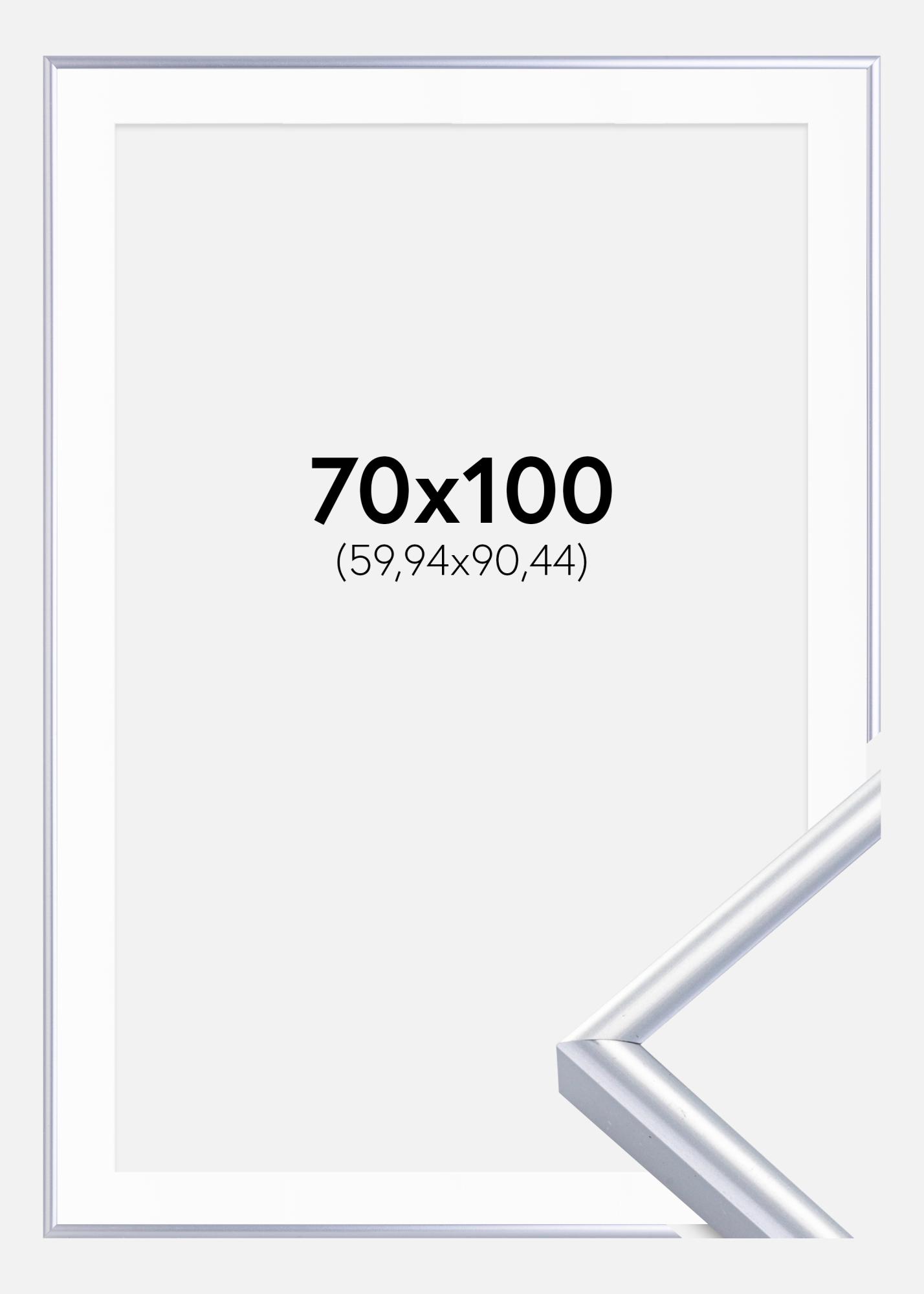 Rahmen Victoria Silber 70x100 cm - Passepartout Weiß 24x36 inches