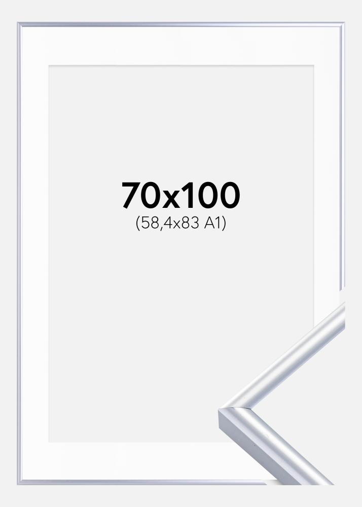 Rahmen Victoria Silber 70x100 cm - Passepartout Weiß 59,4x84 cm (A1)