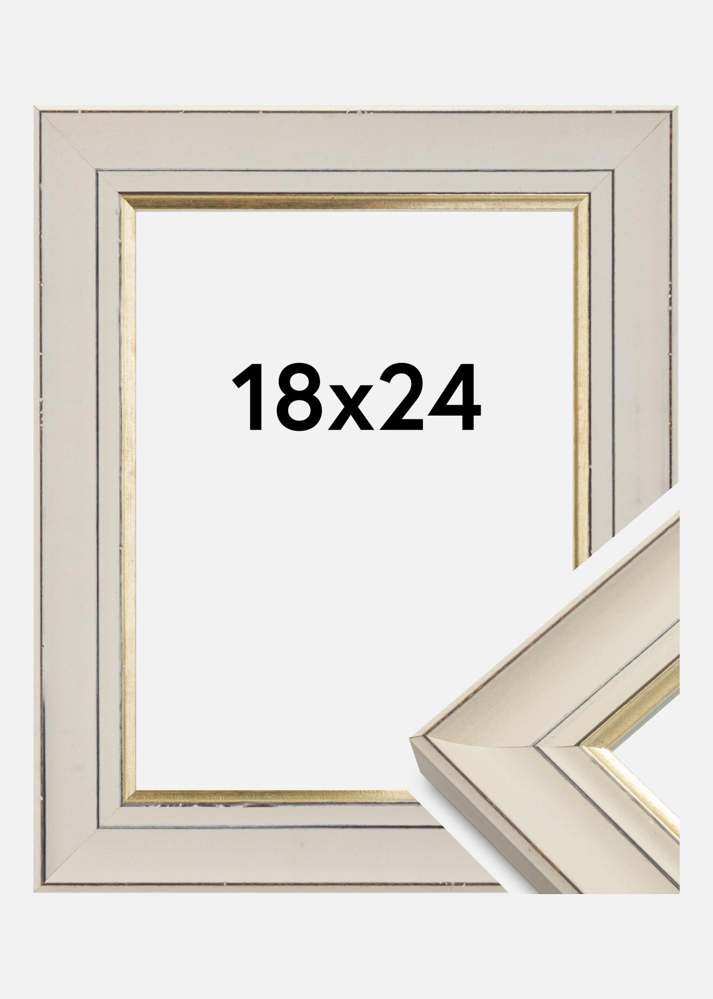 Fotorahmen im klassischen Stil mit tollem Retro-Flair. Das Profil des Bilderrahmens hat einen abgenutzten Look in Weiß mit einem hübschen Goldrand, der direkt neben dem Motiv verläuft. Mit seinem neutralen Design und seiner Farbauswahl passt dieser Bilderrahmen in nahezu jede Umgebung und zu jeder Art von Motiv.