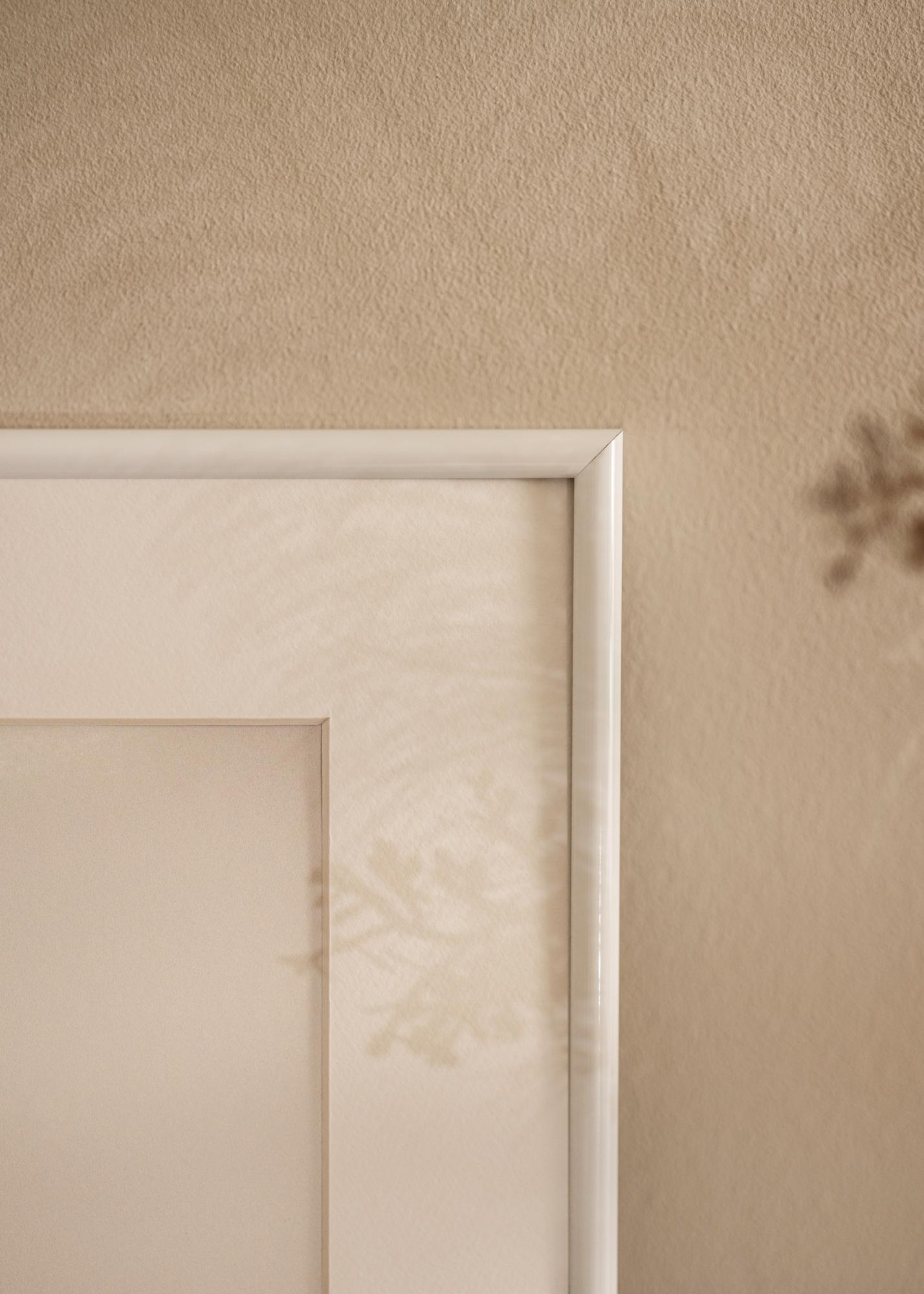 Moderner hochglänzender Fotorahmen in Weiß mit einem tiefen Profil von 26 mm. Dadurch sticht das Motiv aus der Wand hervor und erzeugt einen tollen 3D-Effekt. Perfekt, wenn du einen schlichten Fotorahmen suchst, der deine Bilder auf elegante Weise umrahmt.