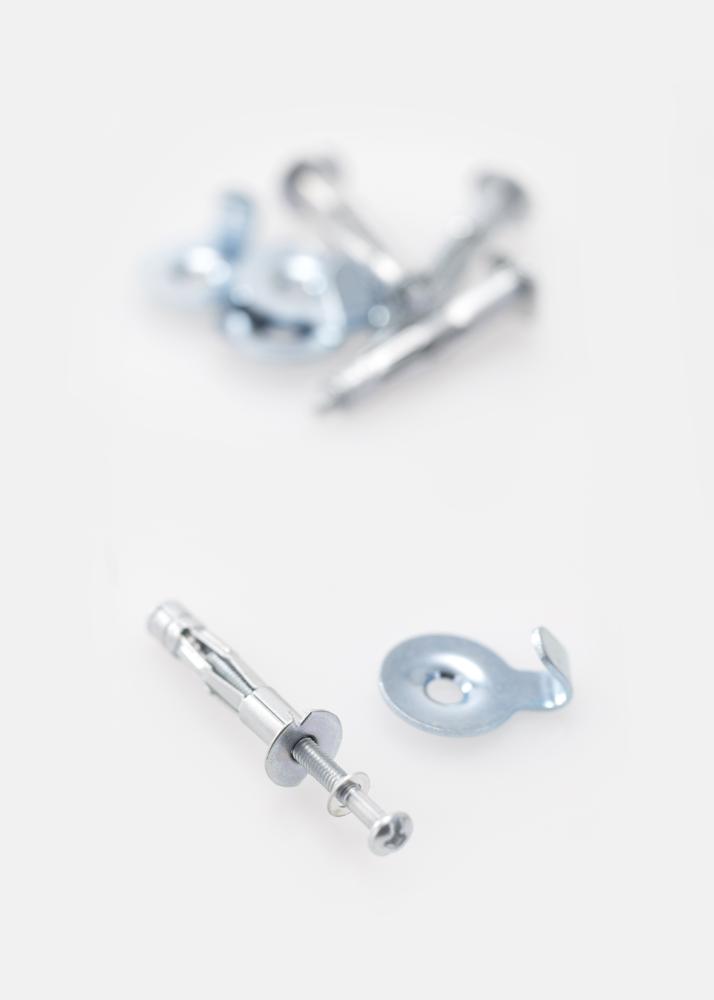 4 Hohlraumdübel und M4 Schrauben für 13 mm Gipswand. Die Nut des Hohlraumdübels eignet sich für 6 mm Schrauben.