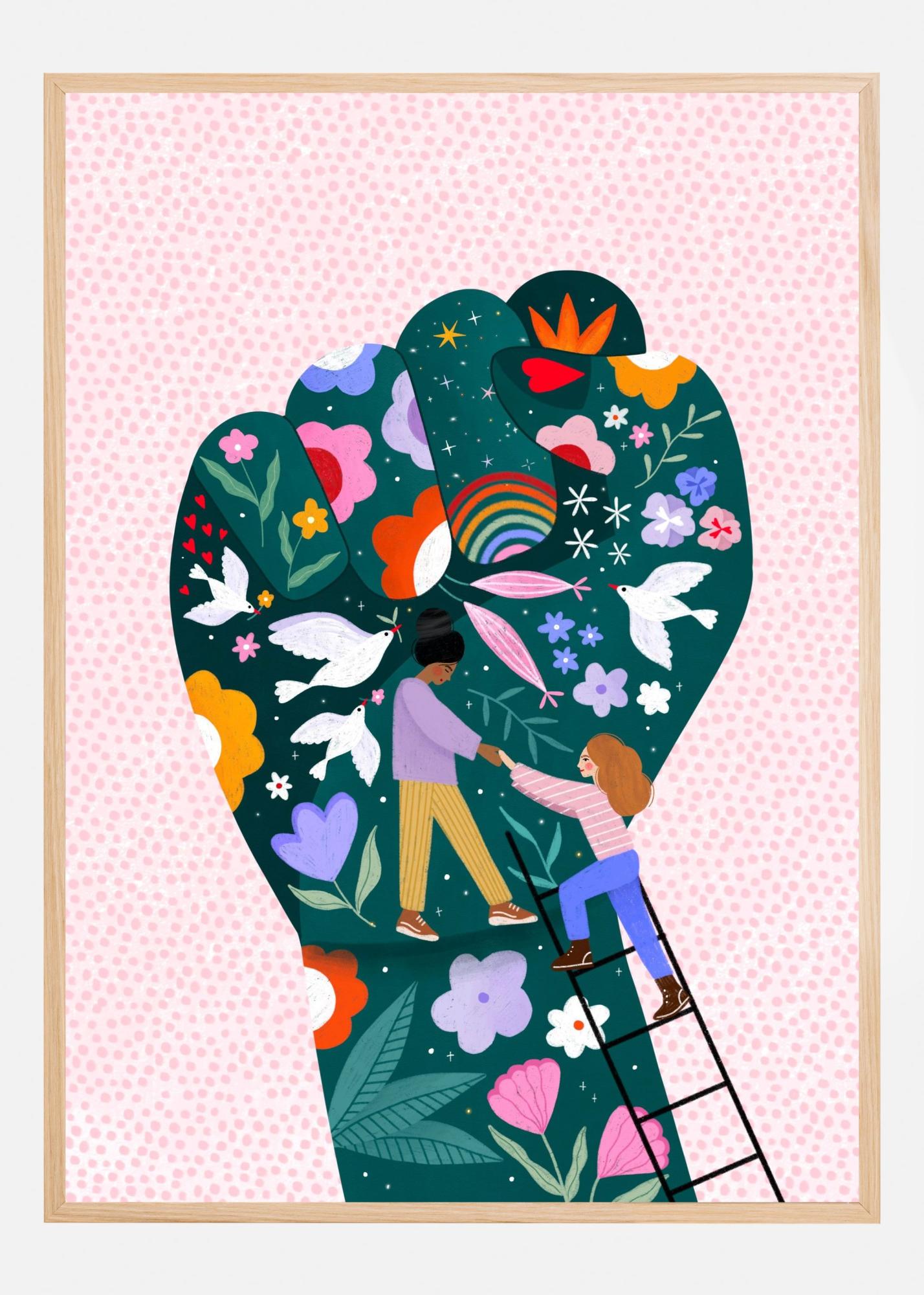 Trendy Poster, das wunderbar mit anderen Bildern kombiniert werden kann, z.B. für eine tolle Bilderwand. Und warum nicht mit einem passendem Bilderrahmen komplettieren Rahmen oder Posteraufhänger.