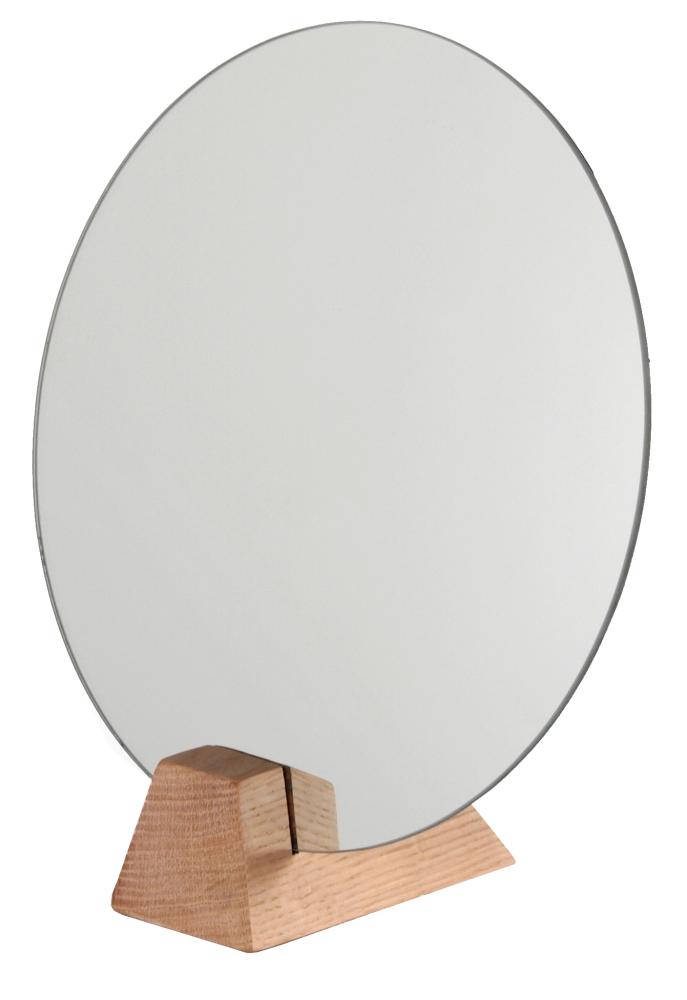 Mit seinem eleganten Design, der Tischstütze aus Eichenholz und der rahmenlosen Spiegelplatte ist dieser Spiegel ein richtig schönes Element für jedes trendbewussten Zuhause. Er hat einen Durchmesser von 30 cm und ist auch mit einer schwarzen Tischstütze erhältlich.