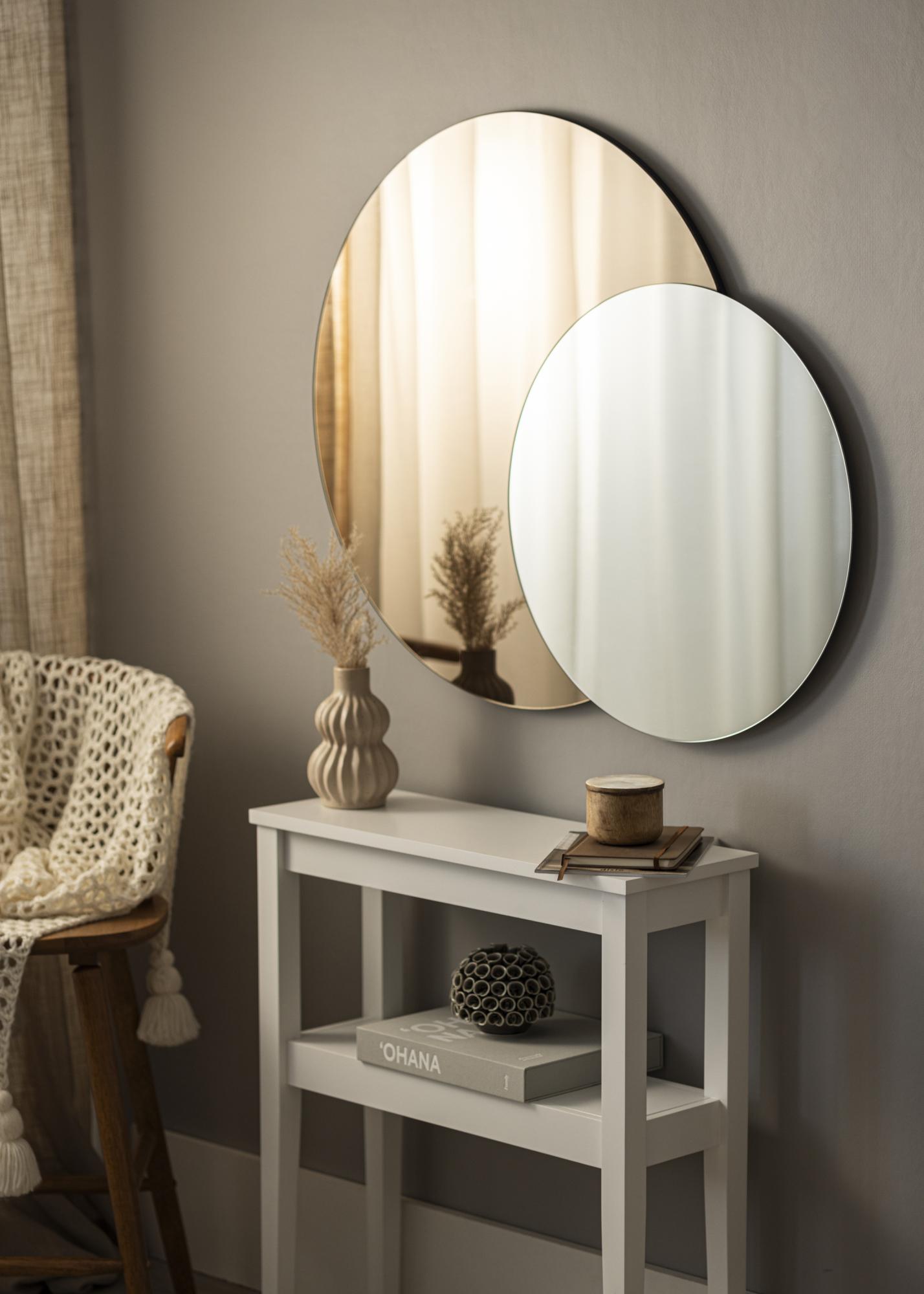 Die dänische Firma Incado steckt hinter diesem genialen und coolen Spiegel, der aus zwei zusammensitzenden runden Spiegelgläsern besteht. Der Spiegel misst 80x100 cm und hat ein Design, dass man nicht jeden Tag sieht. Der eine Teil ist in einer dunklen Bronzefarbe gehalten, der andere Teil ist ungefärbt.