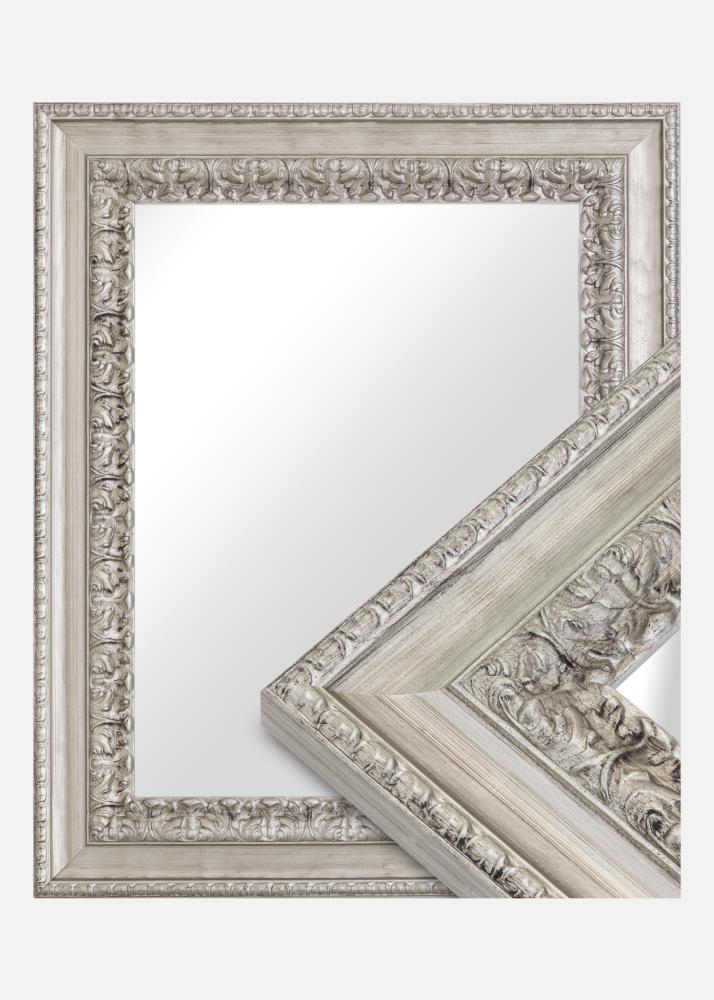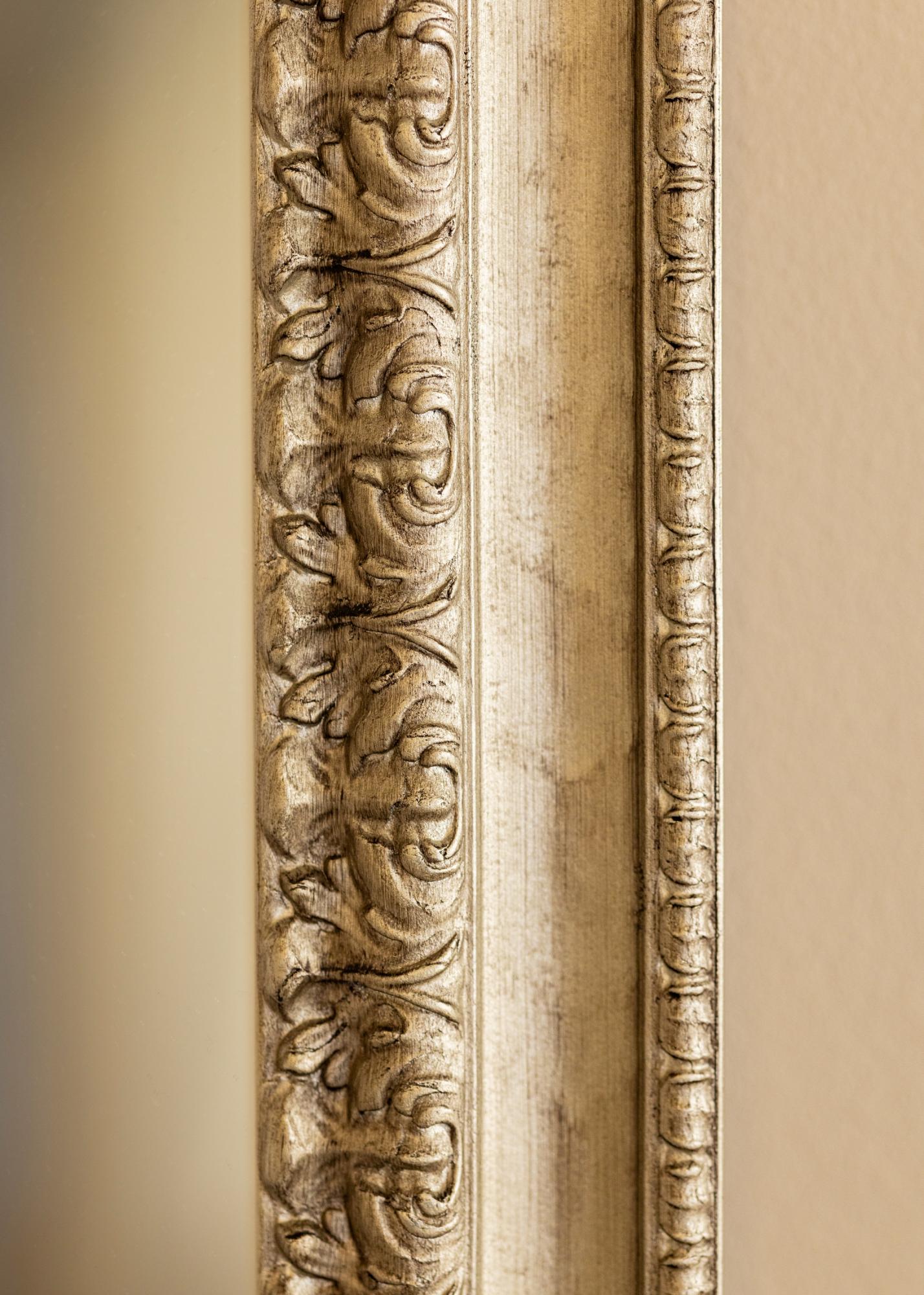 Spiegel Drottningholm Silber III ist ein maßgefertigter Spiegel, der von uns hergestellt wird, um genau Ihren Bedürfnissen zu entsprechen. Mit seiner eleganten Silberfarbe und einer 68 mm breiten Rahmenleiste wird dieser Spiegel zu einem stilvollen Element in jedem Raum. Der Rahmen ist aus Holz gefertigt und hat eine Tiefe von 30 mm, was ein robustes und solides Gefühl vermittelt.