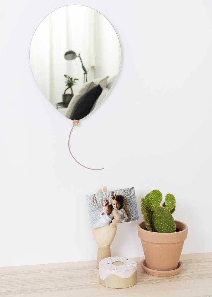 Der luftballonförmige Spiegel ist in zwei Größen erhältlich; die kleinere Variante hat folgende Maße: 28x36 cm.