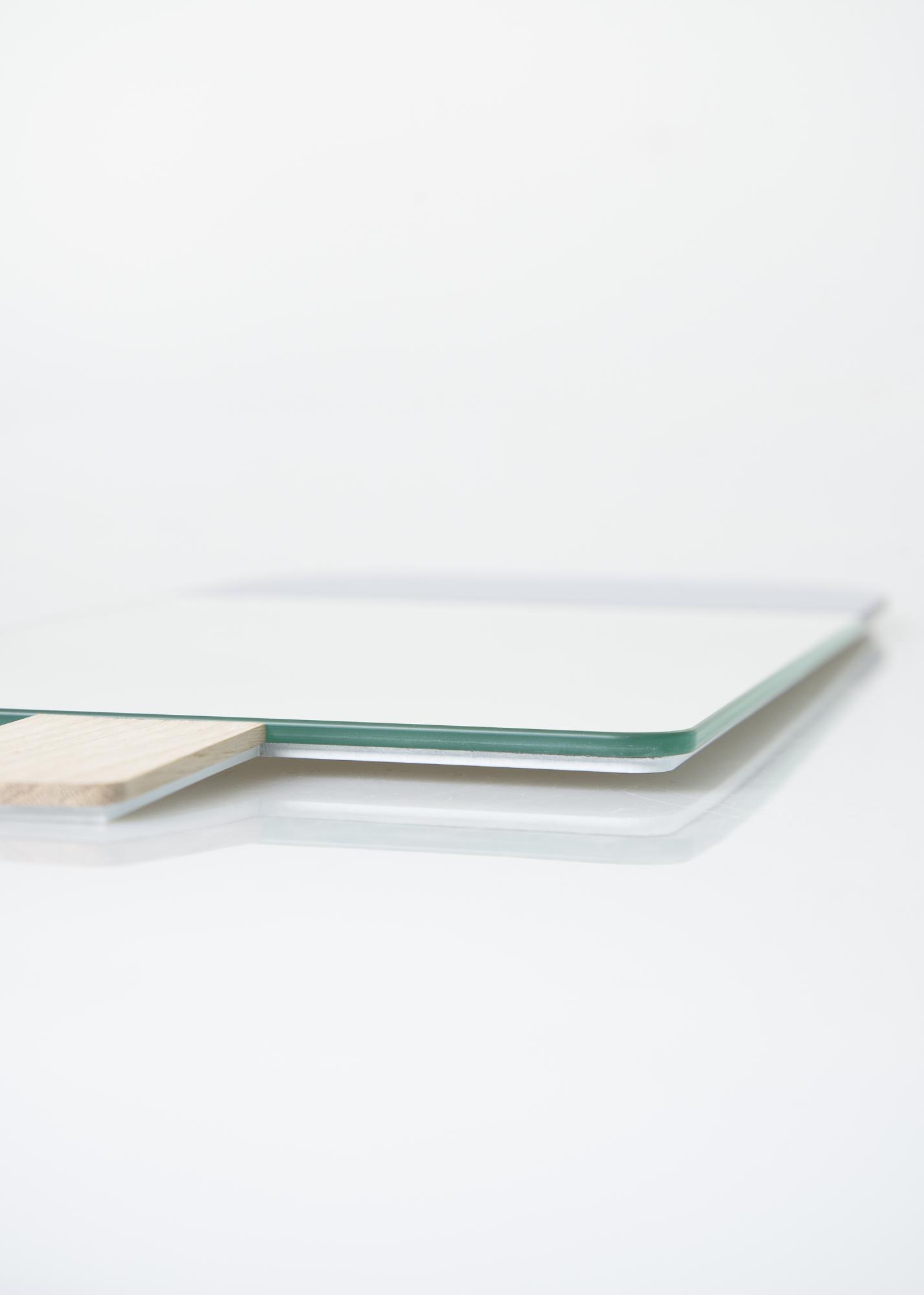 Wandspiegel in skandinavischem Design. Stieleis-Spiegel Ice Cream Mirror – ein Wandspiegel in der Form eines Stieleises! Der obere Teil des Spiegels ist - wie bei einem richtigen Stieleis - in einer anderen Farbe gehalten und der Holzstiel im unteren Teil ist aus unbehandeltem Eichenholz gefertigt.