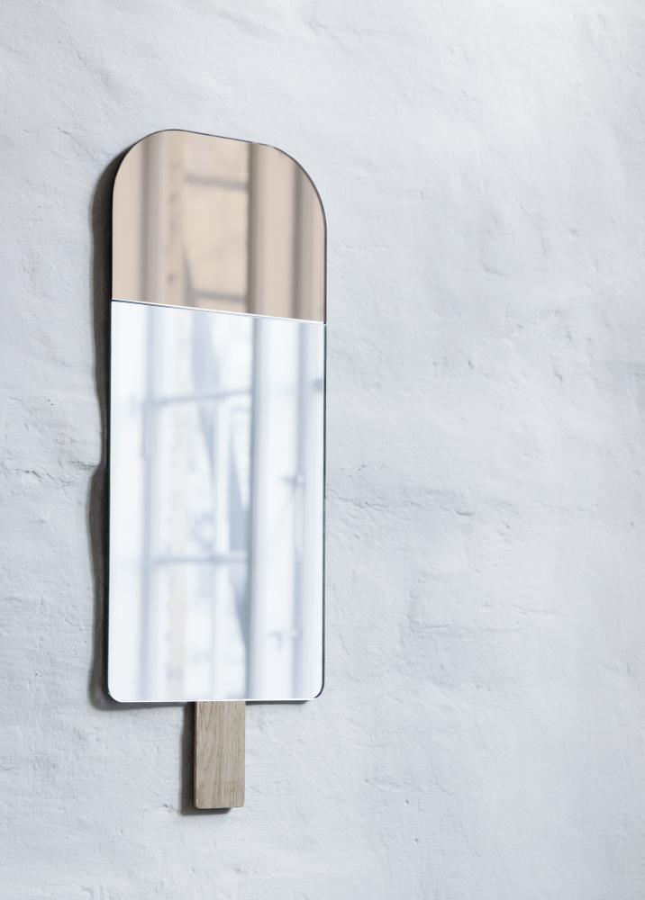 Der Stieleis-Spiegel wurde von Tor & Nicole Vitner Servé für das dänische Label Elements Optimal (EO) entworfen. Skandinavisches Design zum Wohnen und Wohlfühlen. Den Spiegel mit dem andersfarbigen oberen Teil gibt es in verschiedenen Farben; bei dieser Variante ist die Farbe des oberen Teils Warm Rose.