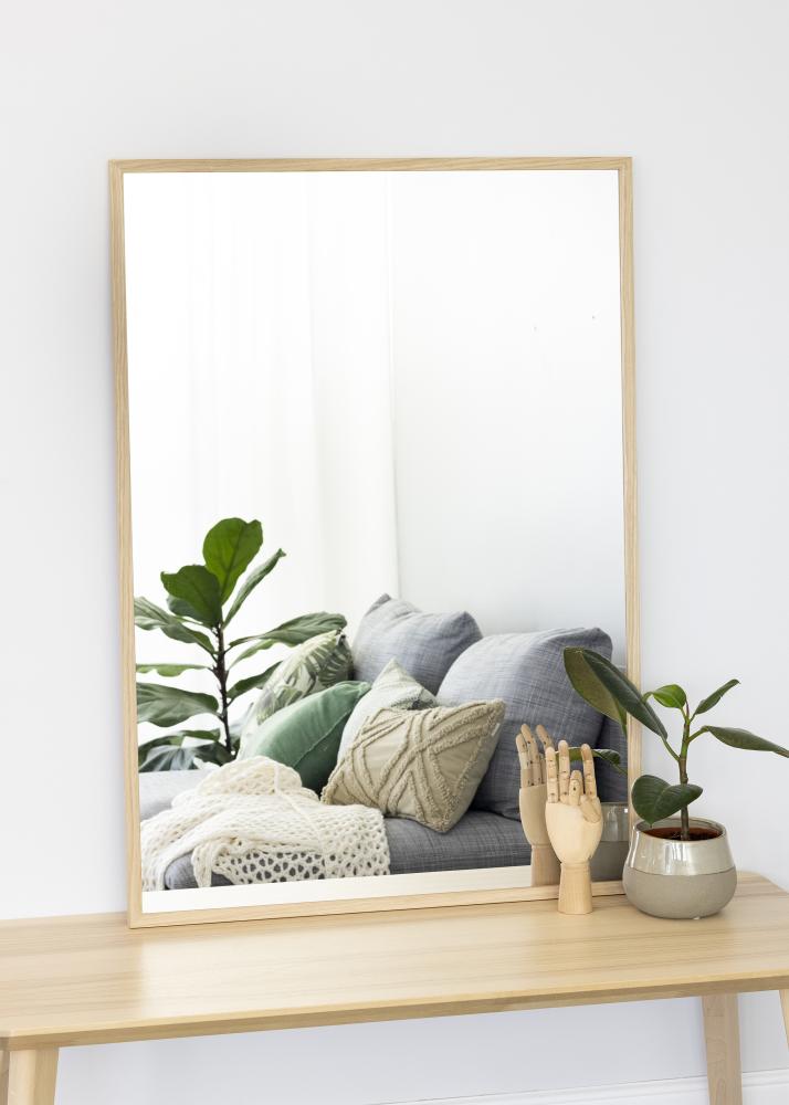 Lassen Sie diesen Spiegel mit einem hochwertigen Eichenholzrahmen Ihr Zuhause schmücken! Die Rahmenleiste besteht aus einer Fichtenleiste mit echtem Eichenfurnier darüber. Die Oberfläche ist unbehandelt, was bedeutet, dass Sie wählen können, ob Sie den Rahmen malen oder beizen möchten, wie Sie es möchten, oder Sie können die rustikale und stilvolle Eichenstruktur belassen. Die Variationsmöglichkeiten machen diesen Spiegel zu einem zeitlosen Detail, das in jedes Zuhause passt. Dieser Wandspiegel misst 70x100 cm und hat ungefärbtes Spiegelglas. Die Rahmenleiste ist 17 mm breit und 22,5 mm tief. Der Spiegel hat Wandbefestigungen.