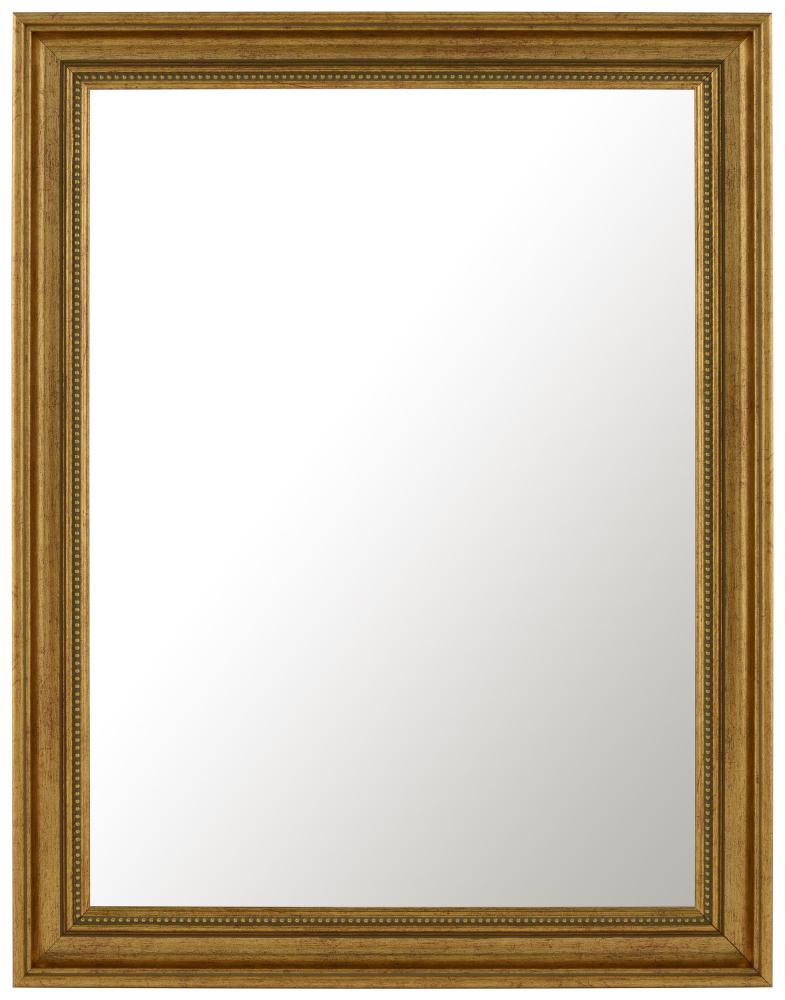 Wenn du deine Wand mit einem schönen goldenen Spiegel aufpeppen möchtest, hast du bei uns die Qual der Wahl! Dieses Design beinhaltet einen klassischen Rahmen mit einem süßen Perlenband, das direkt neben dem Glas verläuft. Die goldene Farbe wird durch kleine Farbveränderungen durchgebrochen, die dem Rahmen Charakter verleihen.