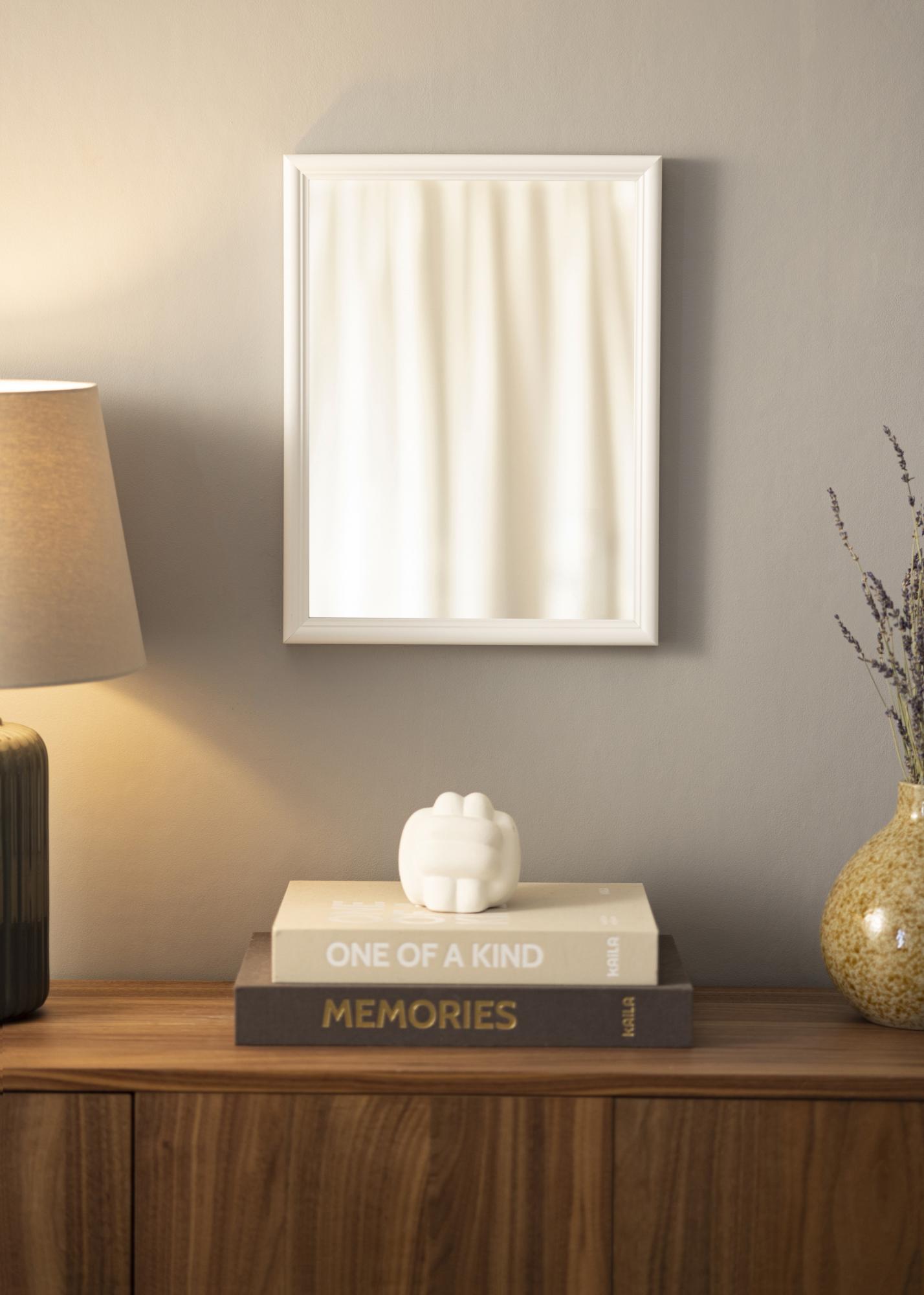 Högbo ist ein hochwertiger weißer Spiegel mit wunderschönem Profil. Perfekt, wenn du auf der Suche nach einem eleganten Spiegel mit einem tiefen Profil bist, das etwas aus der Wand hervorragt.