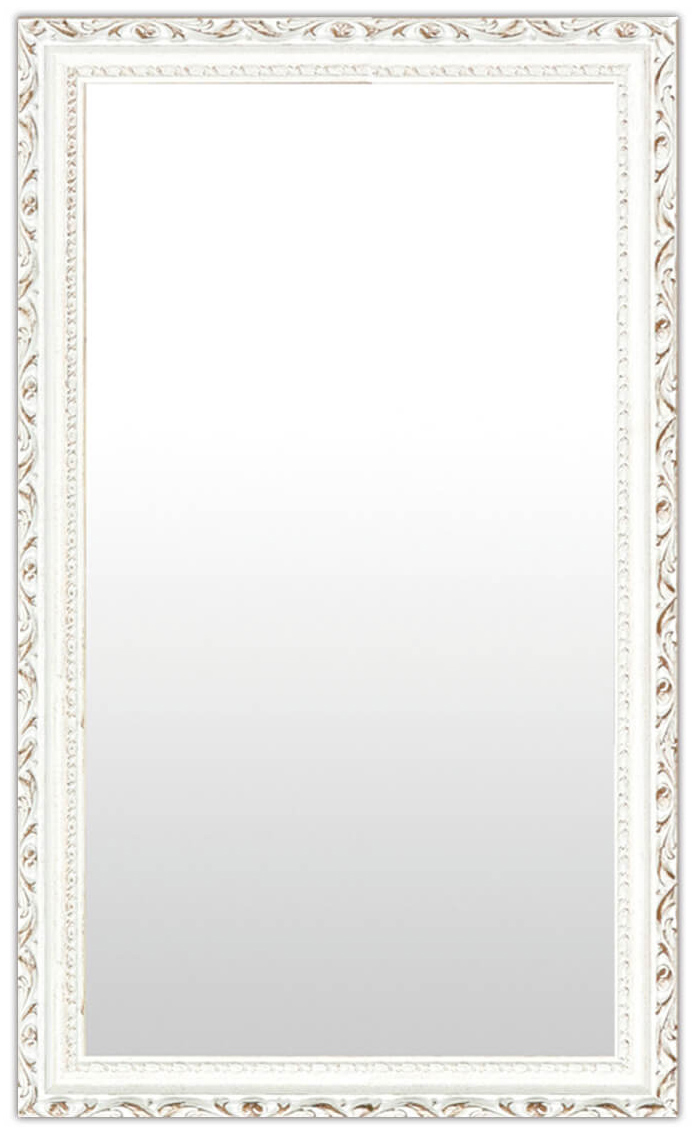Weißer Spiegel im antiken Stil mit sichtbarer Holzmaserung und einer Breite von 40 mm. Eine ausgezeichnete Wahl, wenn du einen Spiegel suchst, der auffällt und Platz einnimmt.