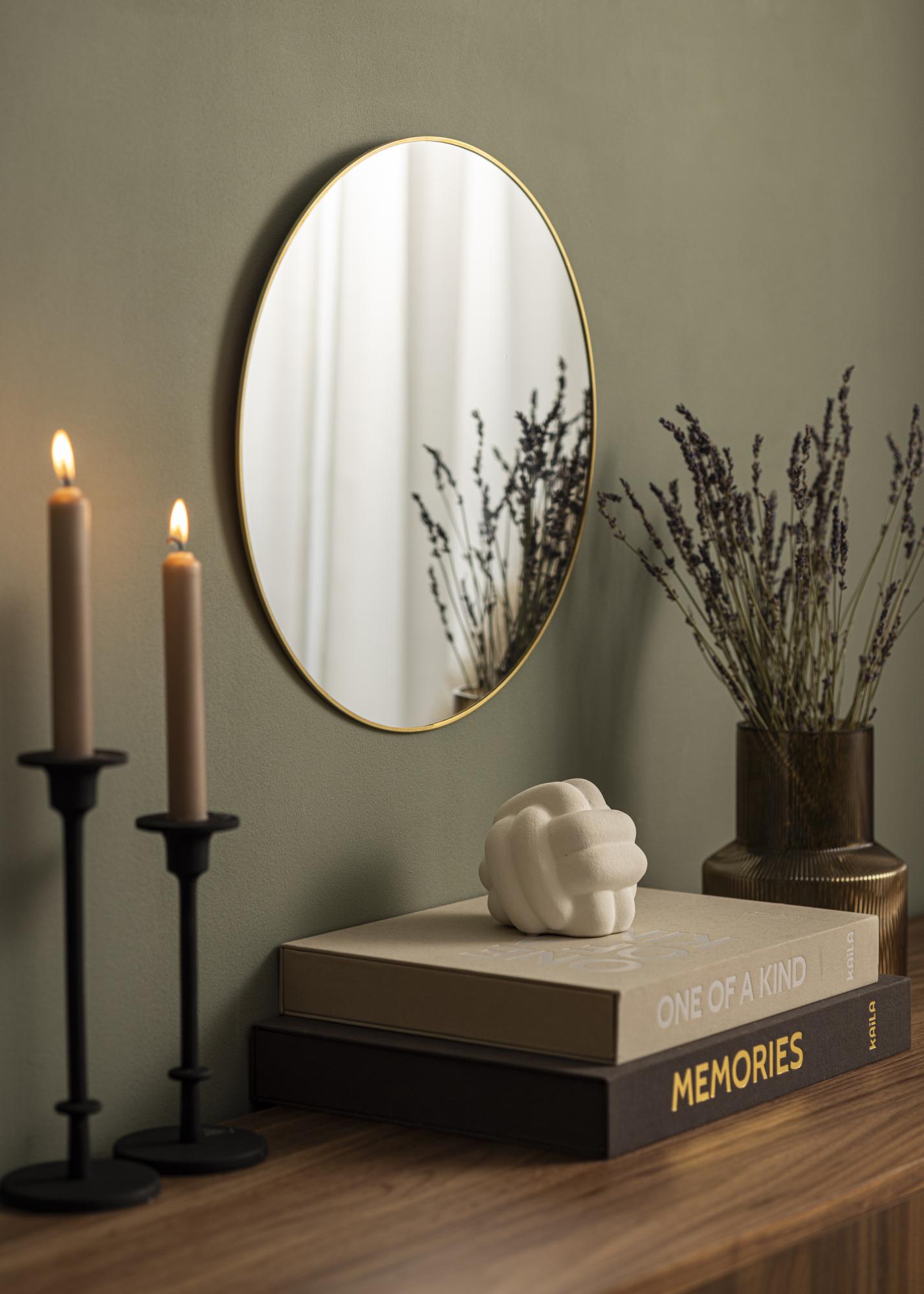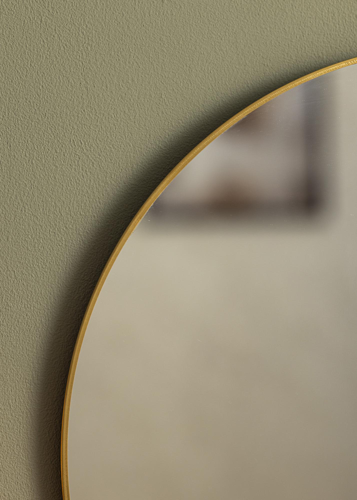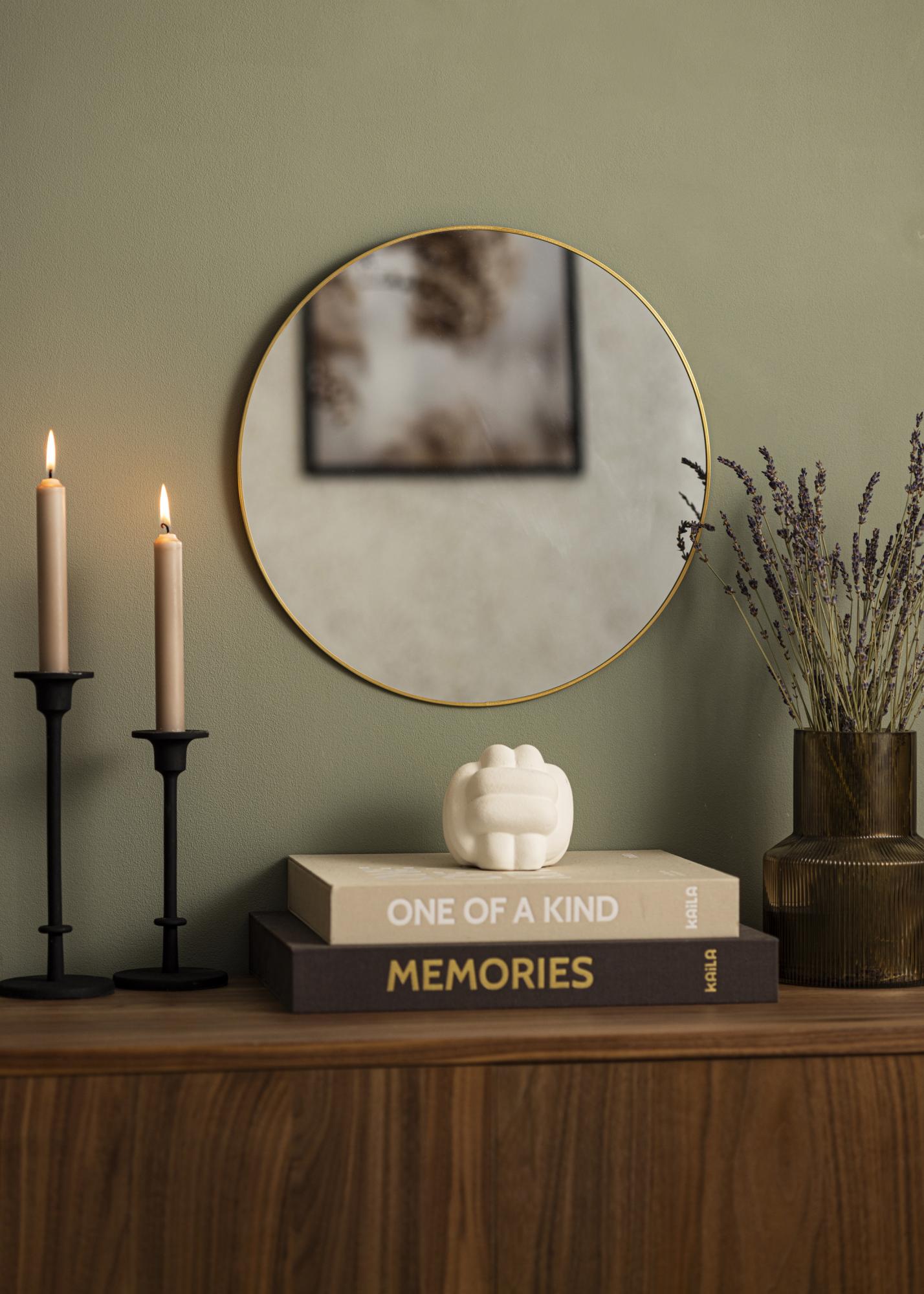KAILA Thin Brass ist ein runder Wandspiegel mit schmalem Rahmen aus messingfarbenem Metall. Dieser Spiegel ist mehr als nur funktionell - er stellt zugleich ein schönes Einrichtungsaccessoire dar. Passt an nahezu jede Wand in wohl jedem Raum, wirkt ansprechend und elegant. Der Spiegel ist mit Wandhalterungen versehen und kann sehr gut als einzige Wanddeko an der Wand aufgehängt werden oder zusammen mit weiteren Bildern, Spiegeln, sonstigen Einrichtungsdetails, damit ein schönes, harmonisches Gesamtbild entsteht.