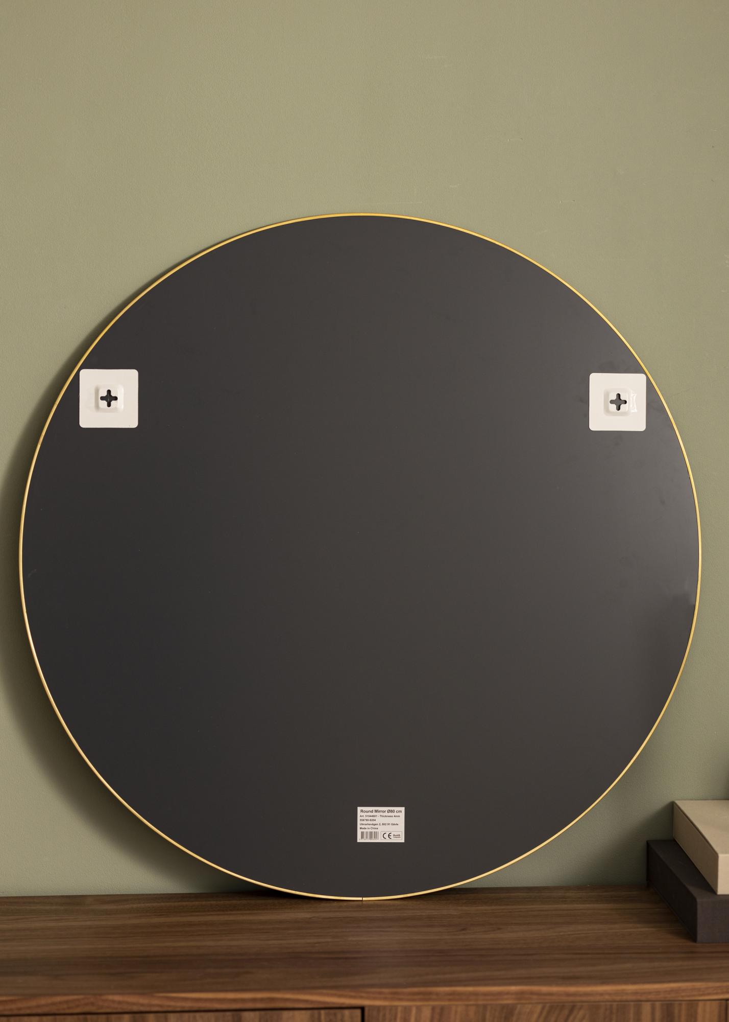 Dieser runde Wandspiegel ist in mehreren Größen erhältlich. Der abgebildete Spiegel besitzt einen Durchmesser von 80 cm.