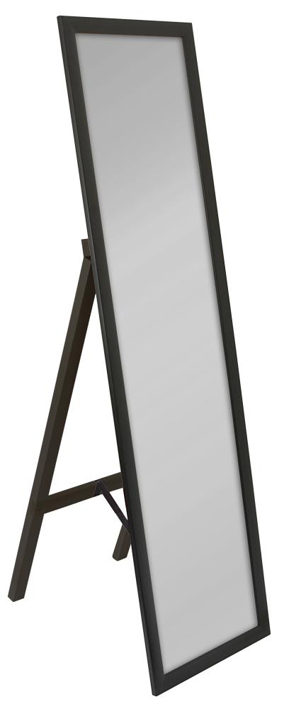 Eleganter schwarzer Standspiegel aus Holz für alle, die keine Möglichkeit haben, im Flur oder Schlafzimmer einen Spiegel an die Wand zu hängen. Sein stilvoller Look und die nüchterne Farbe passen besonders gut in maskuline Einrichtungsstile, er macht sich aber auch gut als Kontrast in einem leichteren Stil. Der Spiegel ist praktisch und bei Bedarf leicht zu bewegen. Er kann in einer Ecke platziert werden, um weniger Platz im Raum zu beanspruchen, und reflektiert das Licht des Fensters, sodass sich der Raum größer anfühlt.