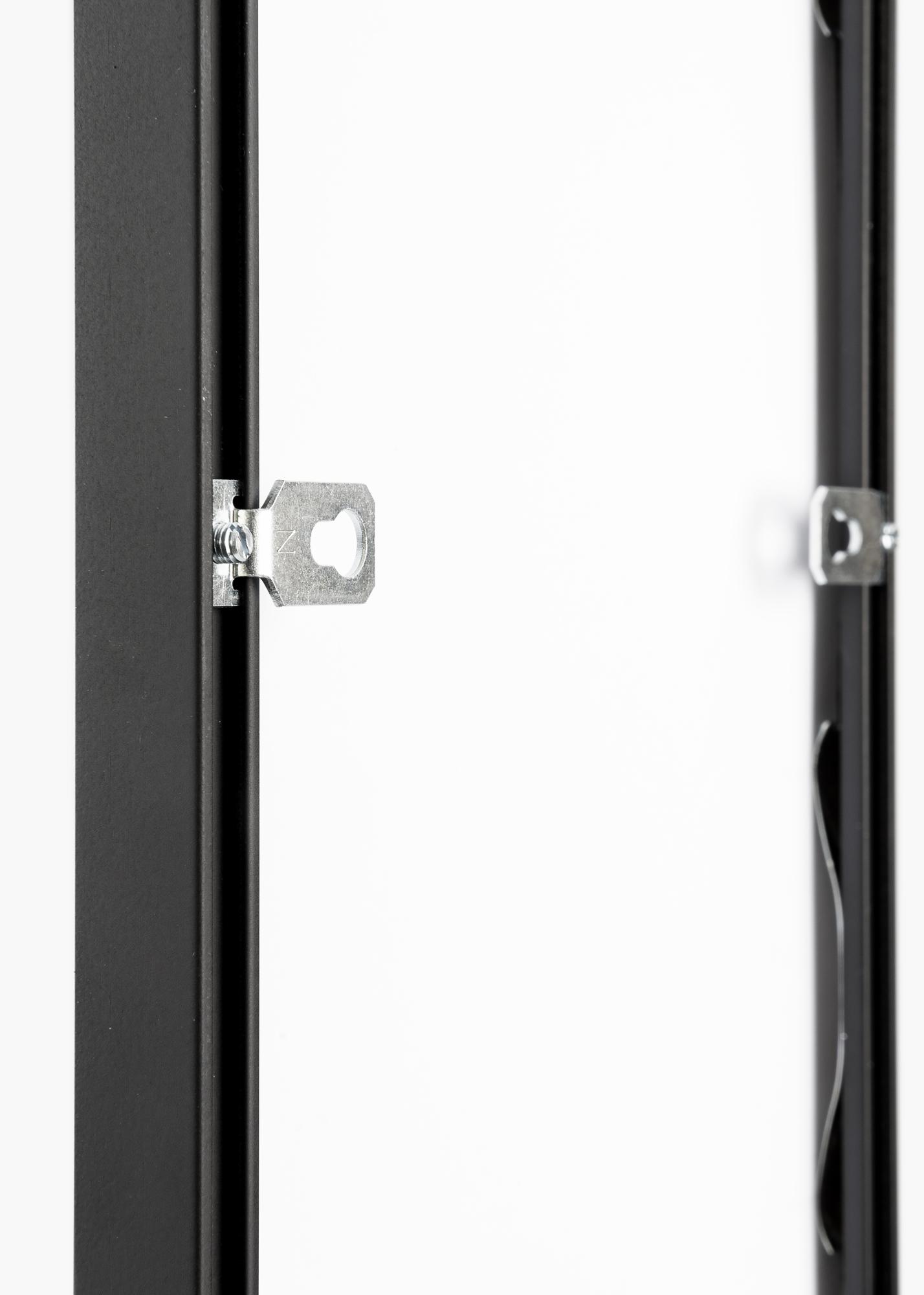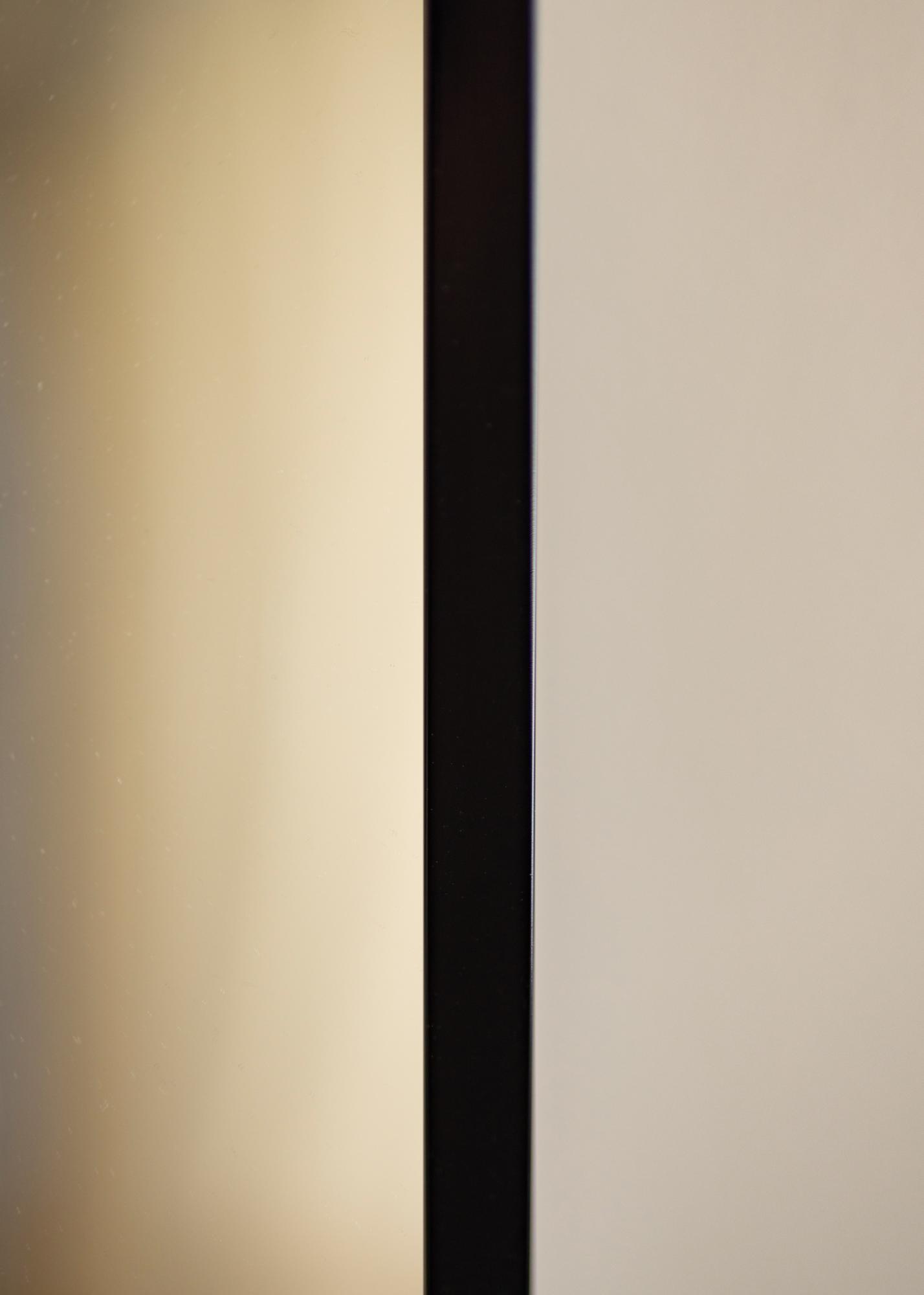 Eleganter Premiumrahmen mit glänzender, dünnen schwarzen Kante, welcher perfekt in modernes stilreines Interieur passt. Der Belag des Fotorahmens und der minimalistische Ausdruck in dem eleganten Design bewirkt, dass er sehr schön für graphische Poster und Schwarzweißfotographien verwendet werden kann. Der Bilderrahmen wird aus Aluminium hergestellt und es gibt ihn in vielen verschiedenen Größen. Dadurch ist er eine gute Alternative, wenn man eine Fotowand mit unterschiedlichen Formaten, die durch die Wahl des Fotorahmens zusammengehalten werden, anfertigen will.