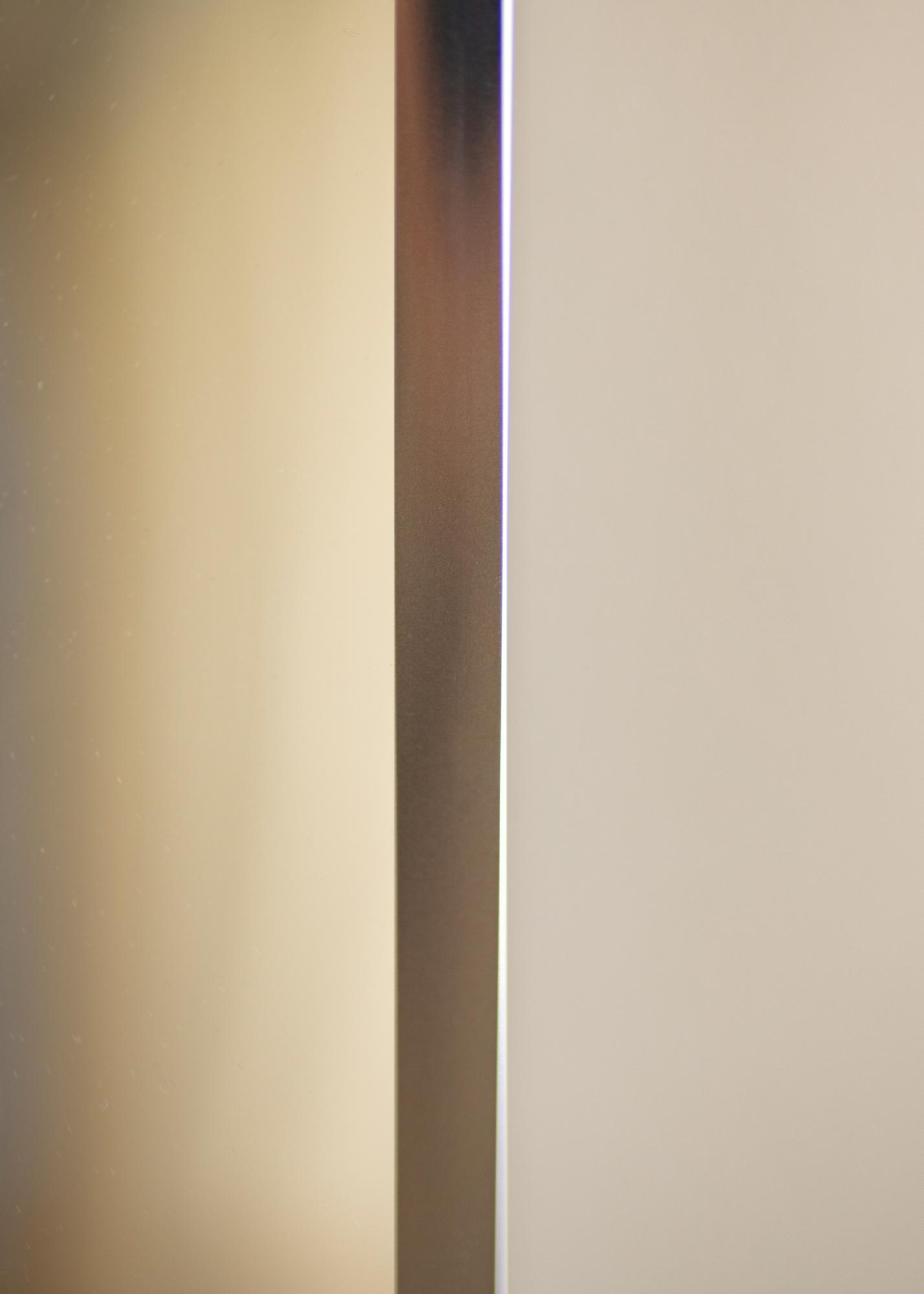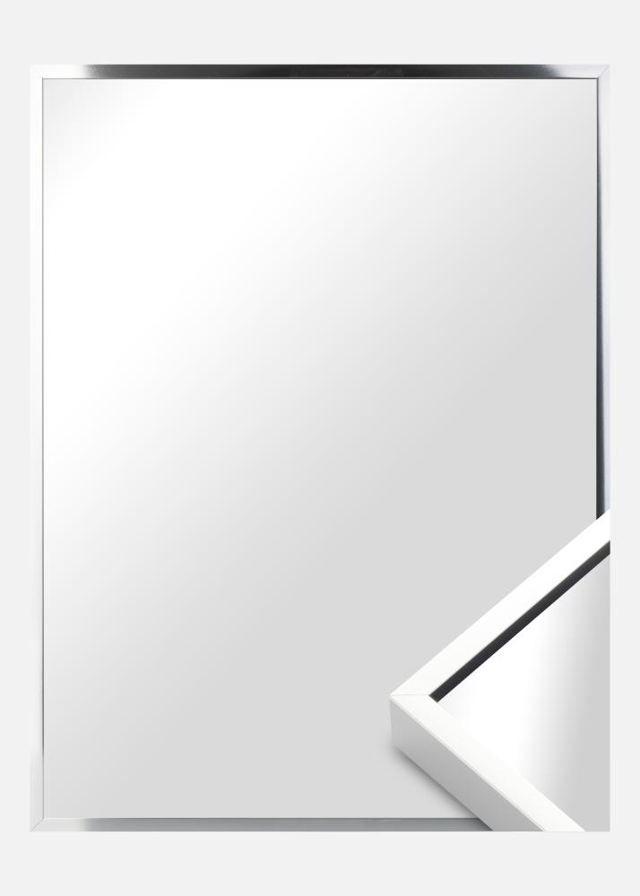 Schicker Spiegel in hochglänzendem Silber sowie hoher Qualität, hergestellt in Deutschland mit einem dünnen Rahmen aus Aluminium. Das minimalistische Design des Rahmens passt gut in jedes Zuhause mit einem schlichten Einrichtungsstil.