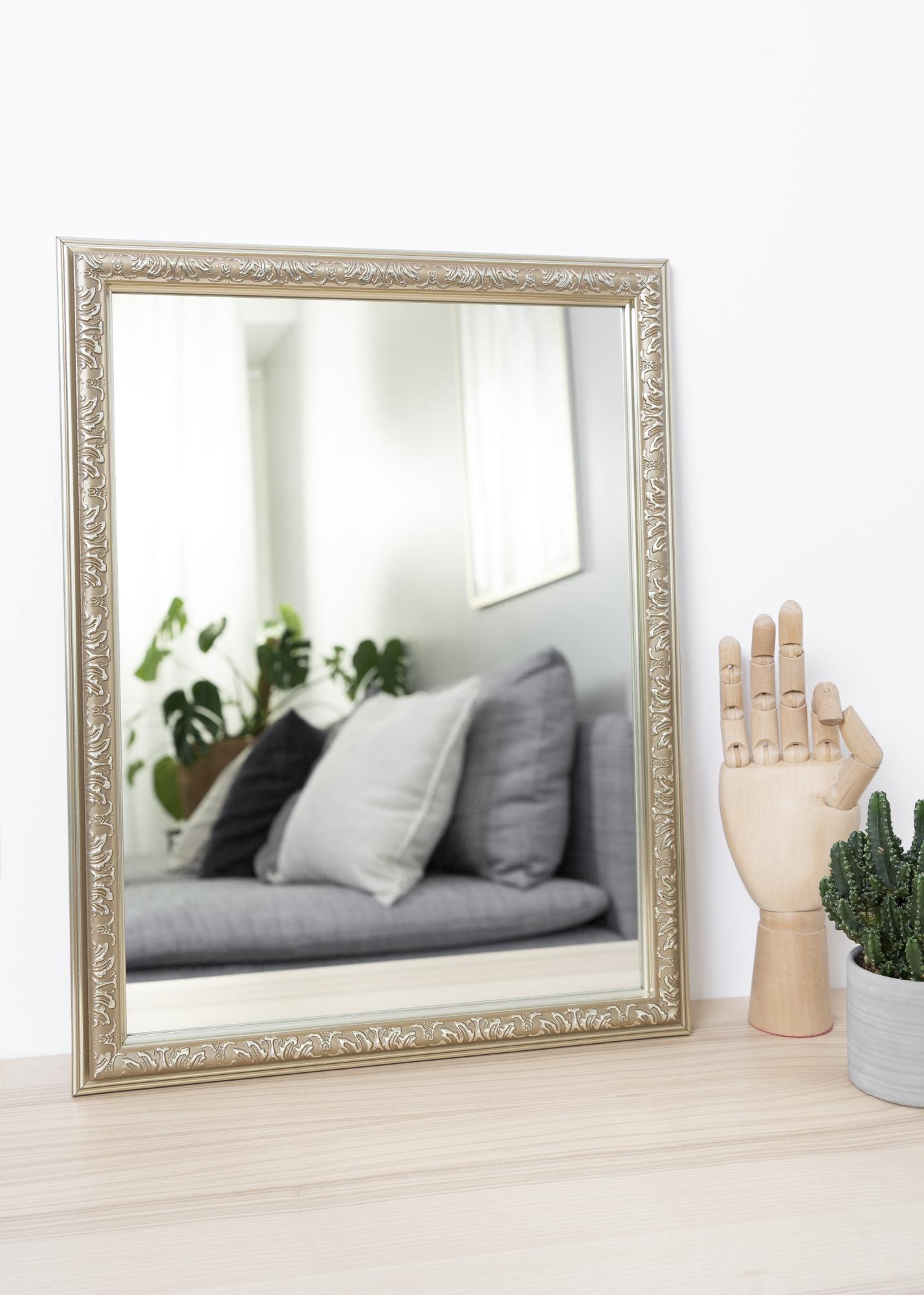 Rahmenkonfigurator starten »Nost heißt diese Reihe von Wandspiegeln. Der Rahmen wurde reich mit unregelmäßigen Symbolen dekoriert, die ihm einen mysteriösen Eindruck verleihen.