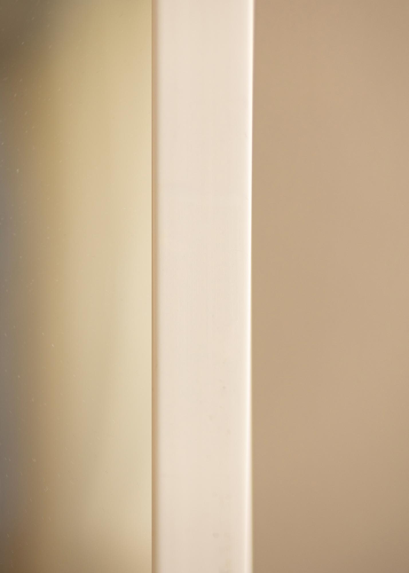 Die weiße Farbe des Spiegels verleiht einen frischen und modernen Eindruck, der sich in die meisten Einrichtungsstile einfügt. Die 12 mm breite Rahmenleiste fasst den Spiegel auf diskrete, aber dennoch effektvolle Weise ein, wodurch er entweder als zentraler Teil des Raumes herausstechen oder als subtile Detail verschmelzen kann.