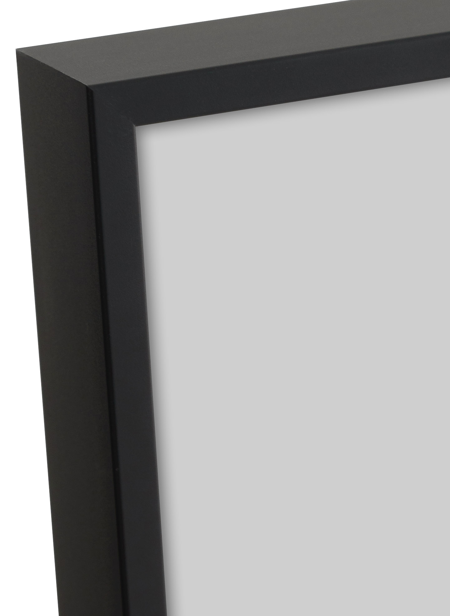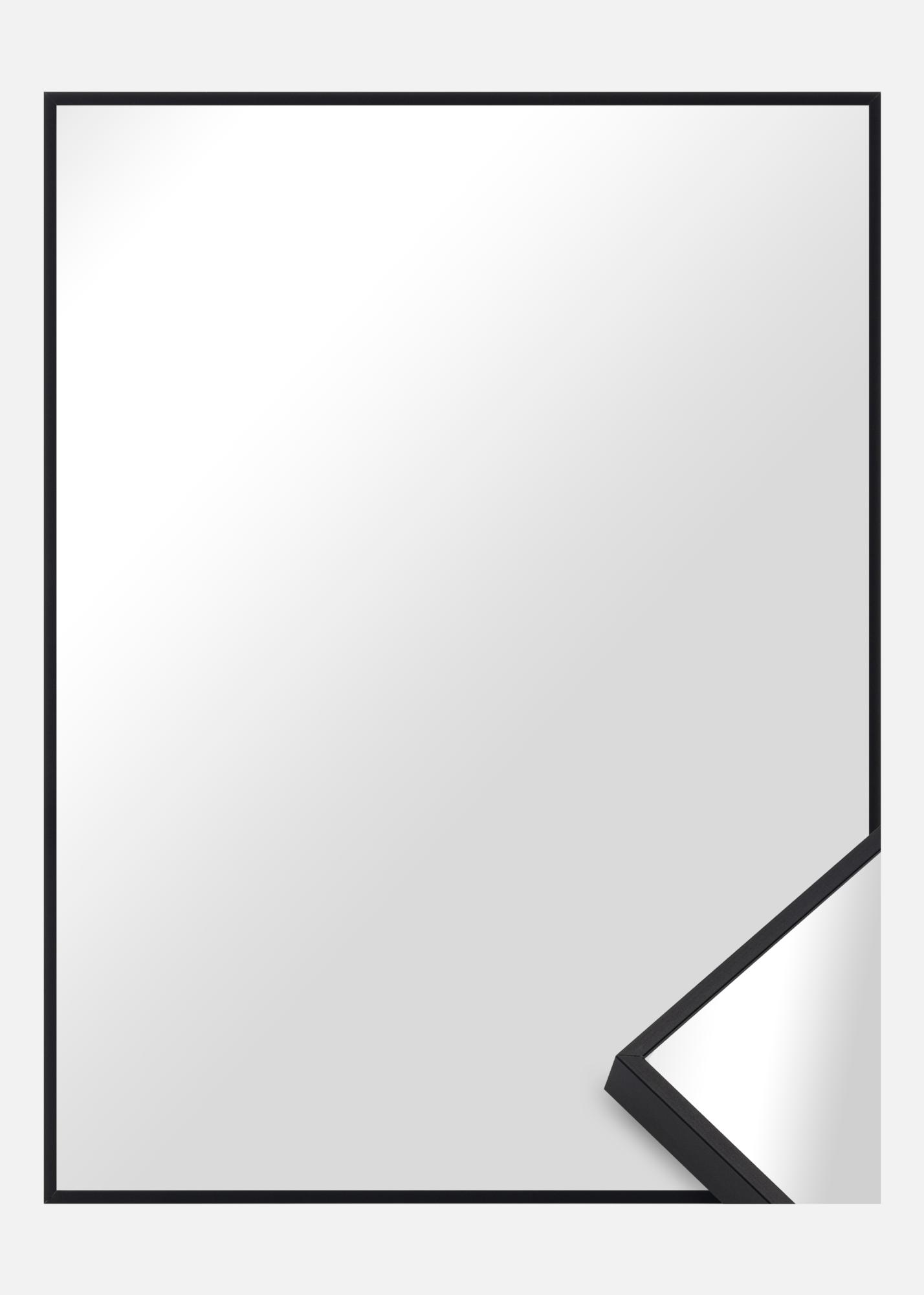 Paris Schwarz hat ein dünnes Rahmenprofil aus schwarzem Aluminium, was ihm eine große Spiegelfläche ohne breiten Rand gibt. Passt sogar gut bei etwas größeren Größen bis 70x100 cm.