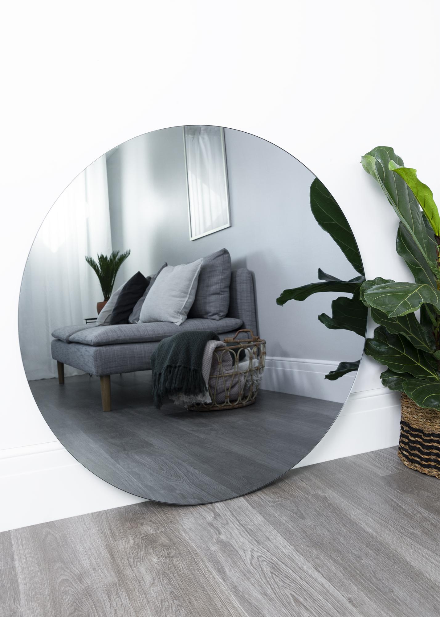 Dieser moderne und trendige Spiegel der dänischen Designmarke Incado hat ein wunderbar grau getöntes Spiegelglas und ist relativ groß - perfekt, wenn du eine größere Version eines runden Spiegels haben möchtest.