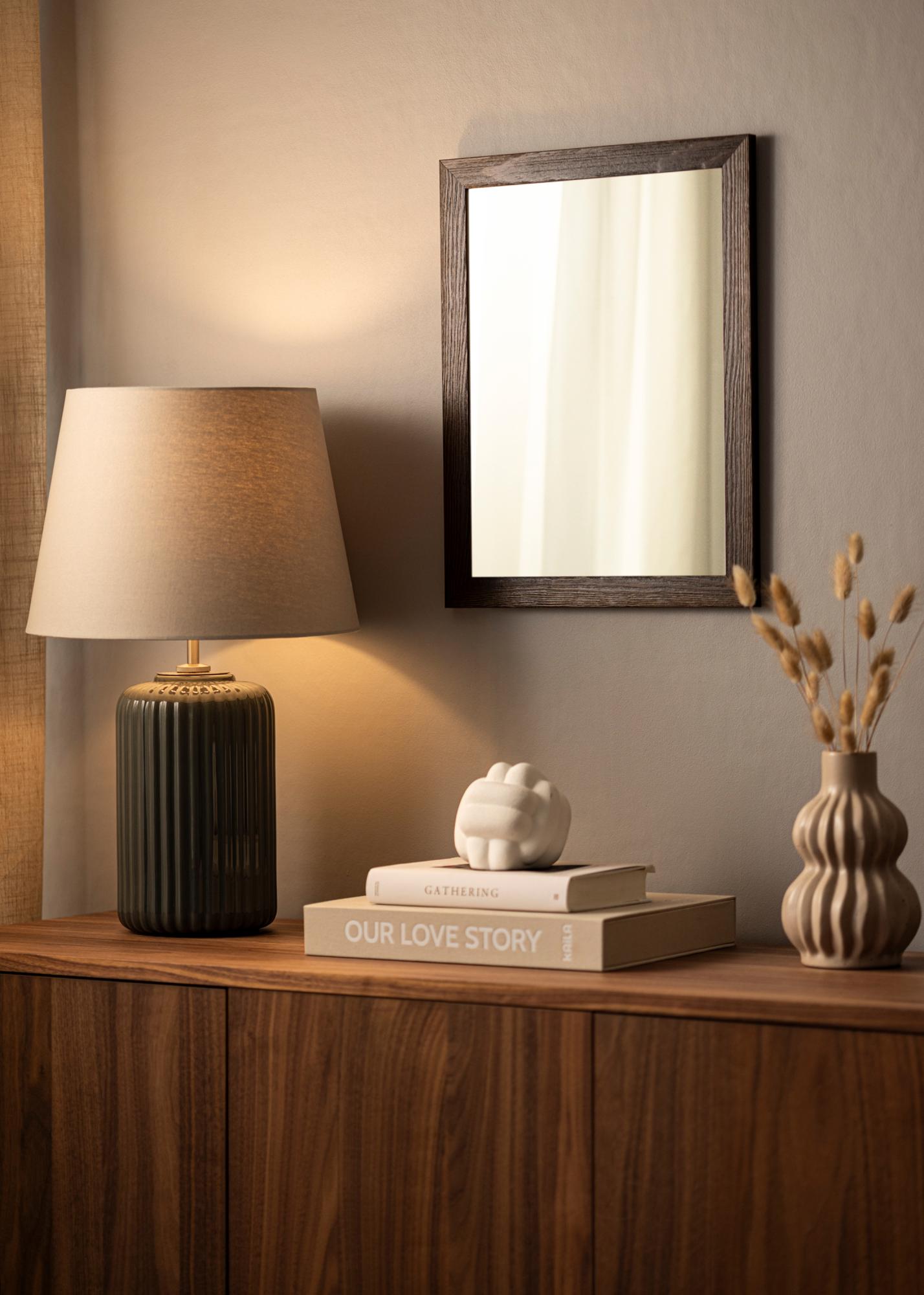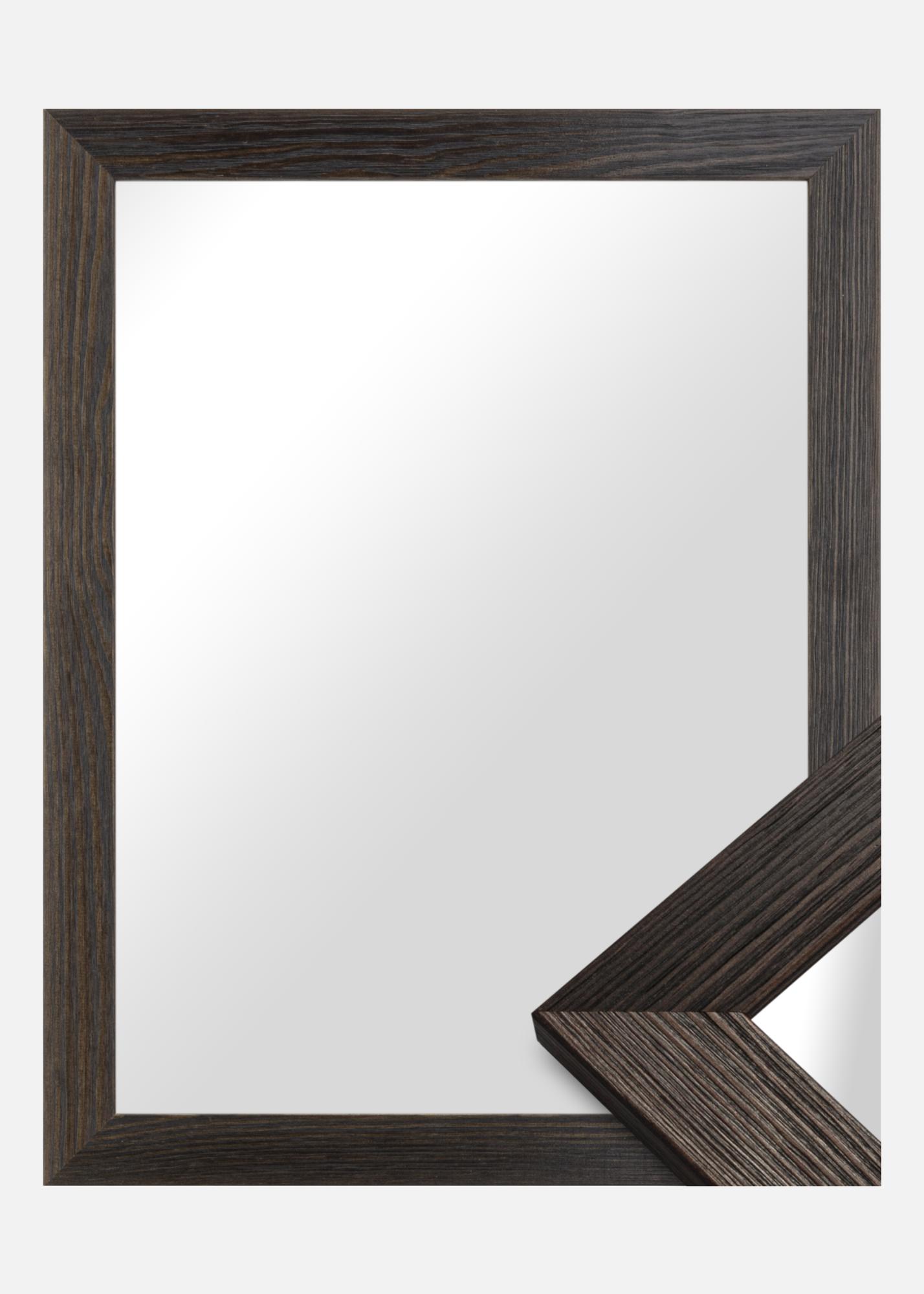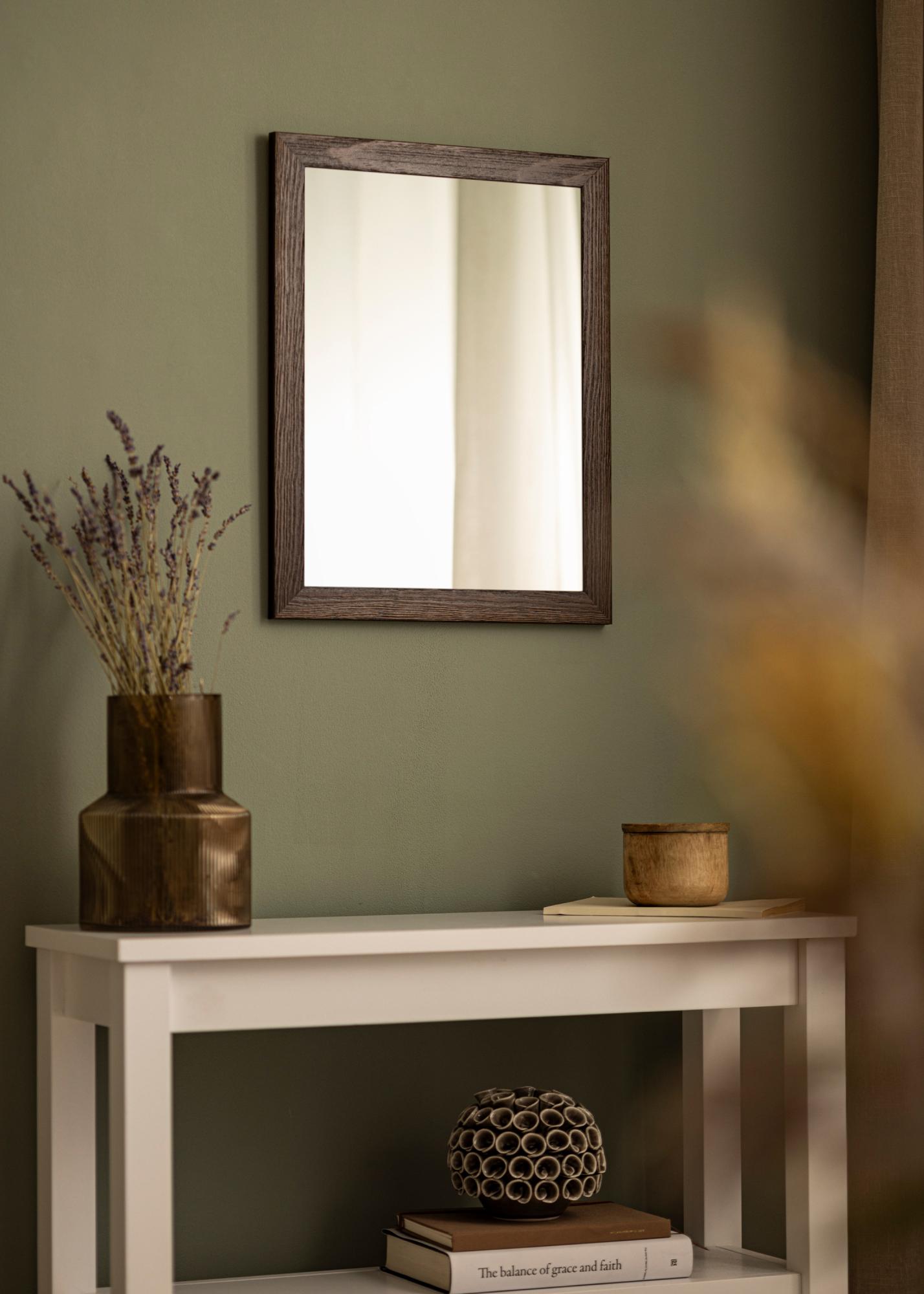 Solider brauner Spiegelrahmen mit sichtbarer Holzmaserung sowie einem breiten Profil. Ideal, wenn du auf der Suche nach einem dunklen Holzrahmen mit einer natürlichen Note bist.