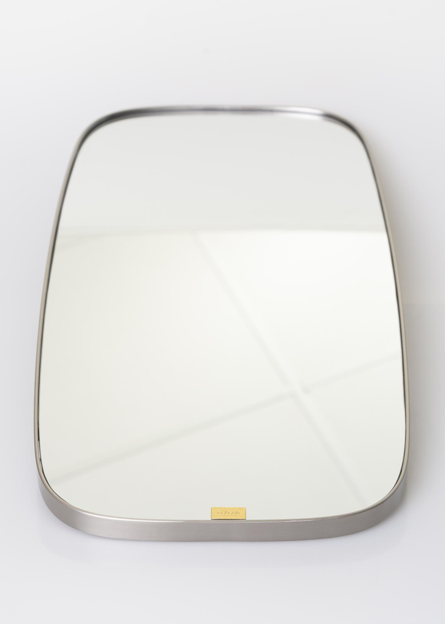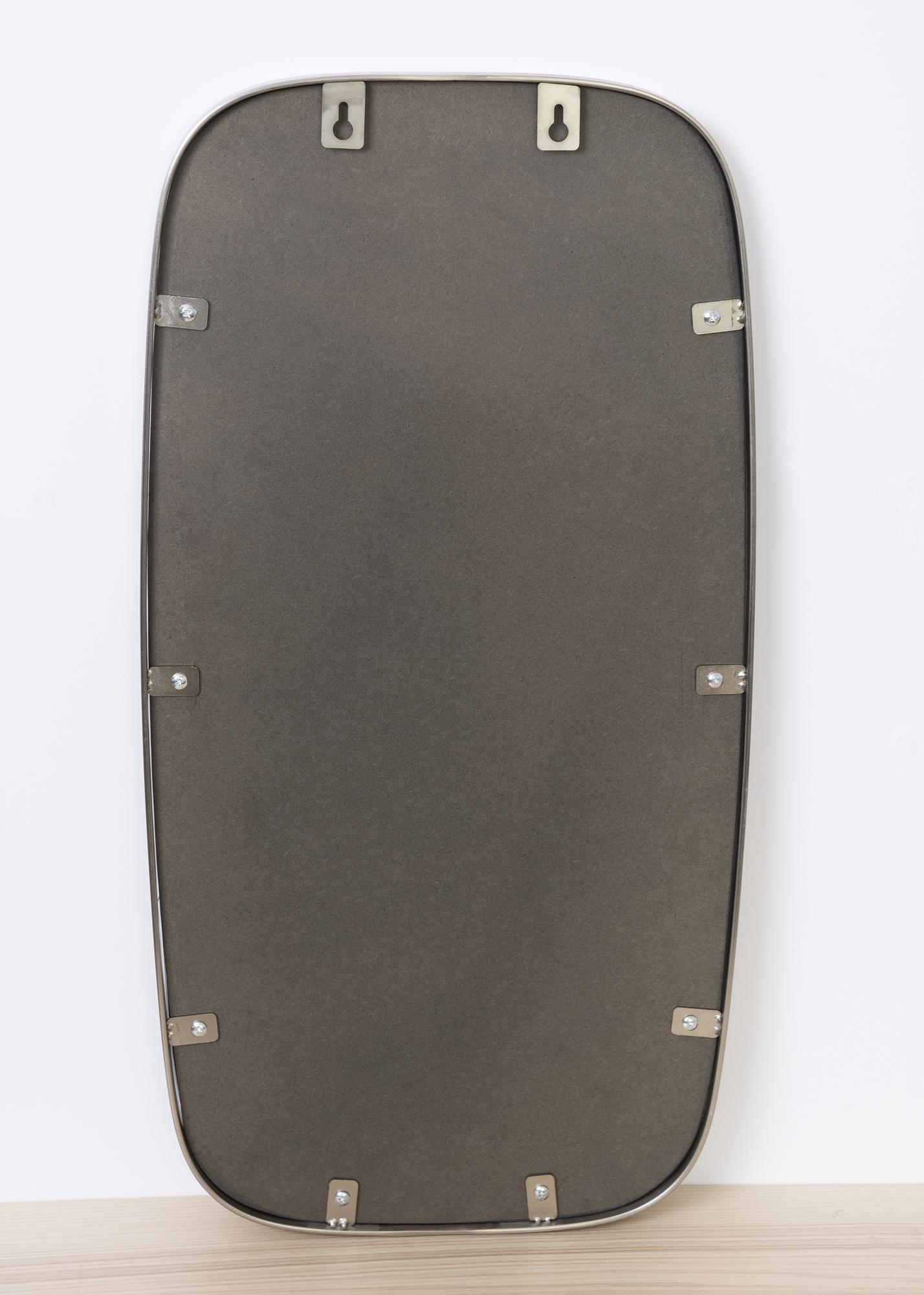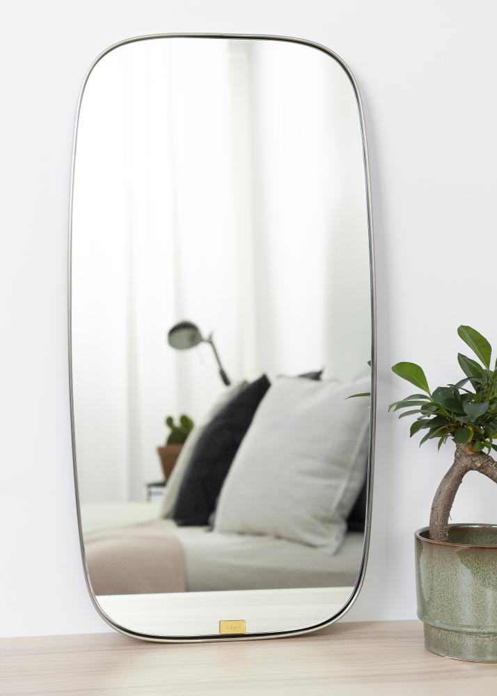 Schöner Wandspiegel eingefasst mit einem schmalen, stilvollen Metallrahmen. Durch die ovale Formgebung erhält der Spiegel einen weichen, eleganten Ausdruck, der zu fast allen Einrichtungsstilen passt.