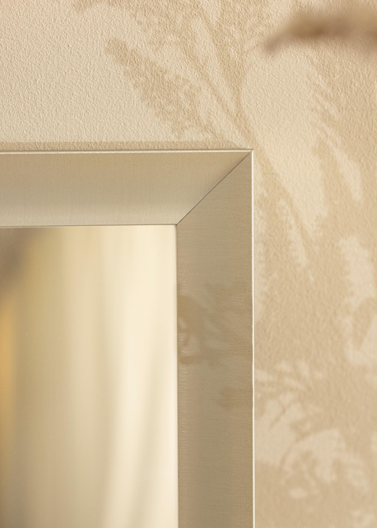 Schicker Spiegel mit einem diamantfarbigen Rahmen sowie einem runden Profil, das einen weichen Eindruck vermittelt, aus hochwertigem Aluminium. Die neutrale Farbe und die klare Form des Spiegels passen in jedes Zimmer und zu jeder Art von Einrichtung, am besten wirken jedoch in Kombination mit Pastellfarben. Hänge den Spiegel gemeinsam mit grafischen Zeichnungen und Fotografien mit schwarzen Rahmen auf und kombiniere ihn mit einer Einrichtung aus Glas oder in Schwarz, um eine Ganzheit im Raum zu schaffen.