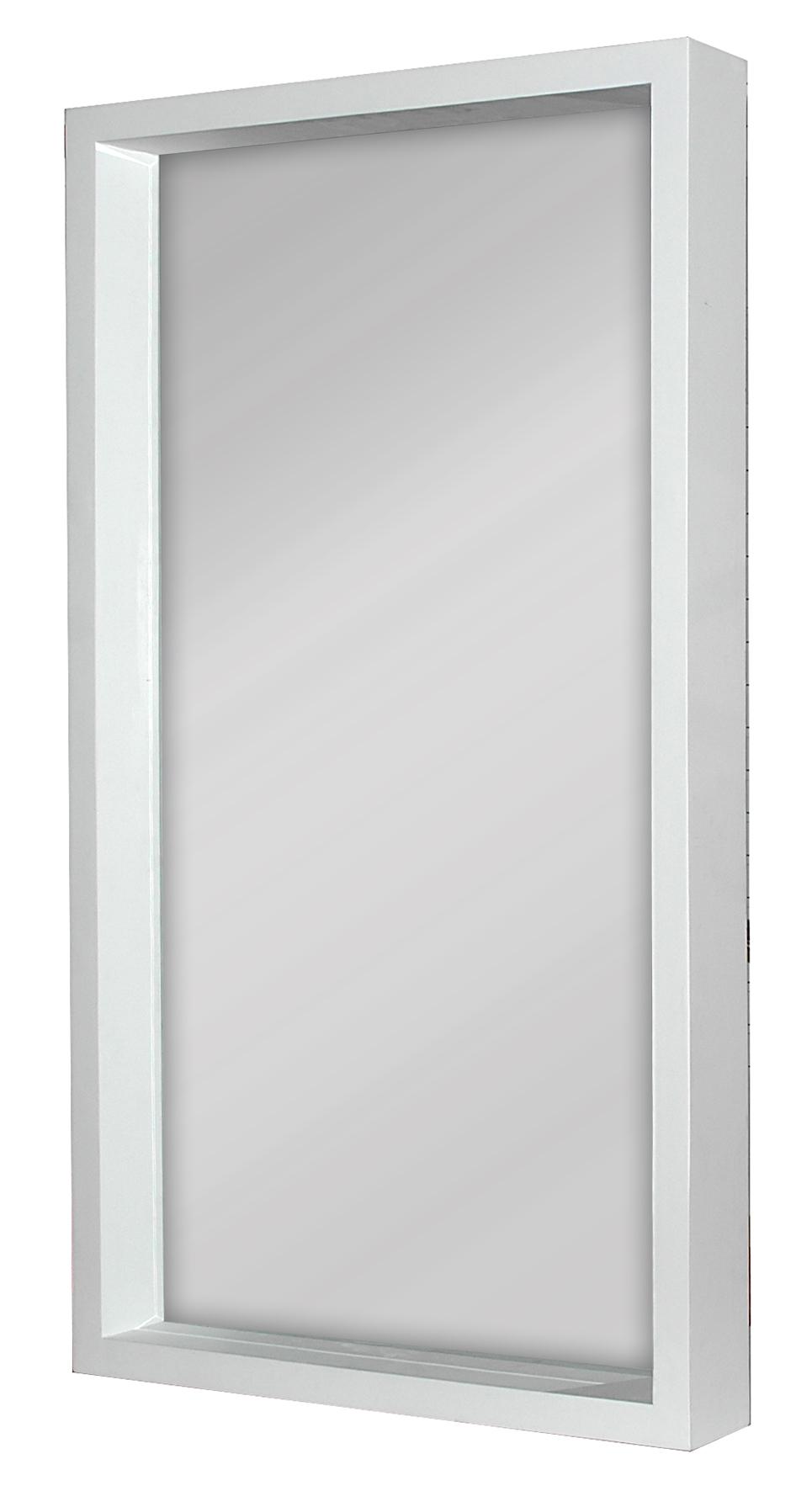 Außergewöhnlicher Spiegel mit einem stilvollen weißen Rahmen aus Holz. Der strenge Ausdruck lässt den Spiegel gut zu modernen, schlichten Einrichtungsstilen passen und die weiße Farbe eignet sich besonders gut für dunklere oder gemusterte Wände. Auf den breiten Rahmen kannst du Dekorationsgegenstände stellen, um dem Spiegel eine persönliche Note zu verleihen und dessen eckiges Erscheinungsbild zu mildern.