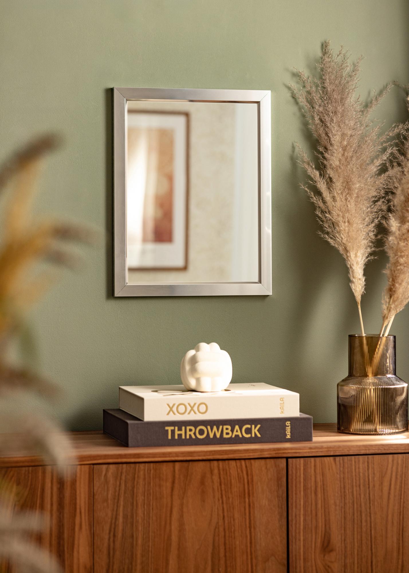 Unglaublich schicker Spiegel mit einem hochglänzenden Silberrahmen, der fast wie Spiegelglas aussieht. Der Rahmen wurde in Deutschland aus Aluminium hergestellt und ist von hoher Qualität. Das hochglänzende Aussehen des Spiegelrahmens zieht die Augen auf sich und reflektiert effektiv Licht, was besonders dann von Vorteil ist, wenn du den Spiegel verwenden möchtest, um einen dunklen Raum etwas heller zu machen. Das klare Design des Spiegels passt sowohl in eine minimalistische moderne Einrichtung als auch in ein Zuhause, in dem sowohl Neues als auch Altes gemischt wird.