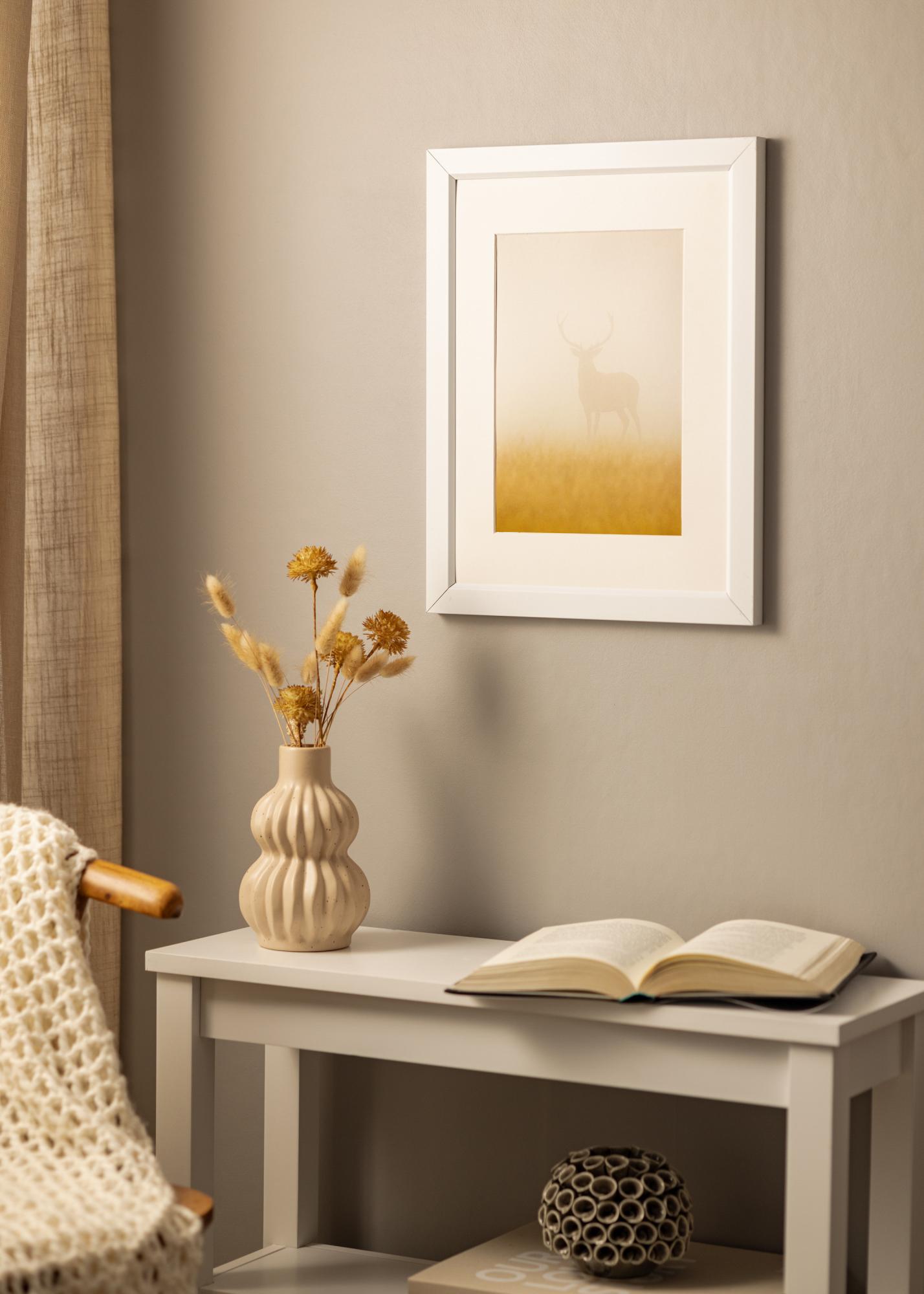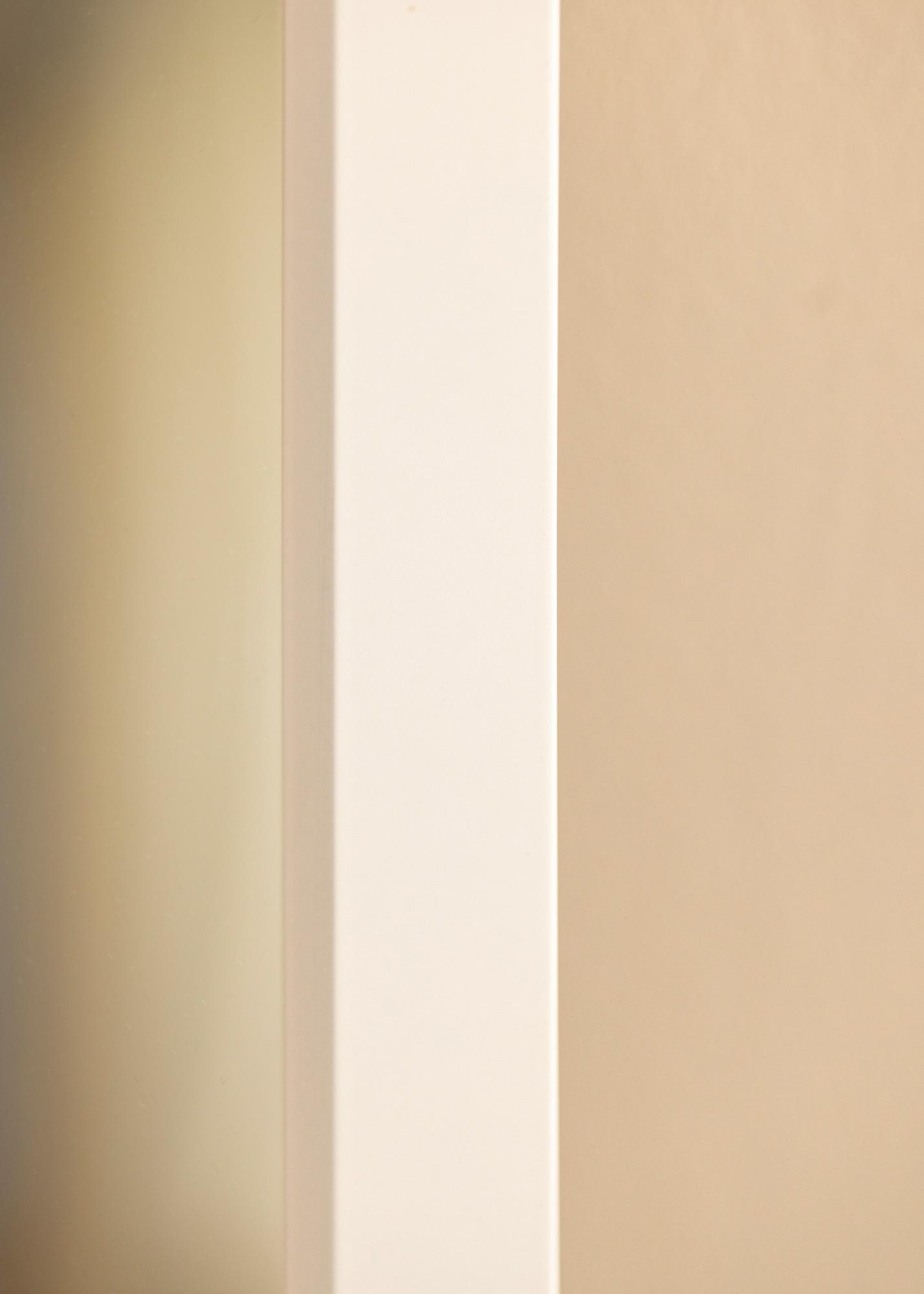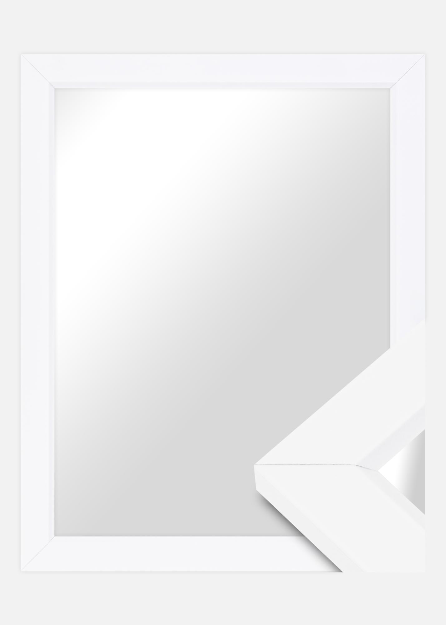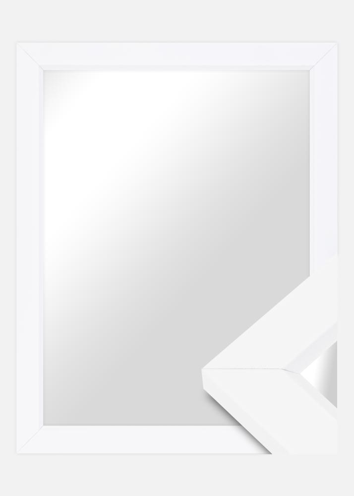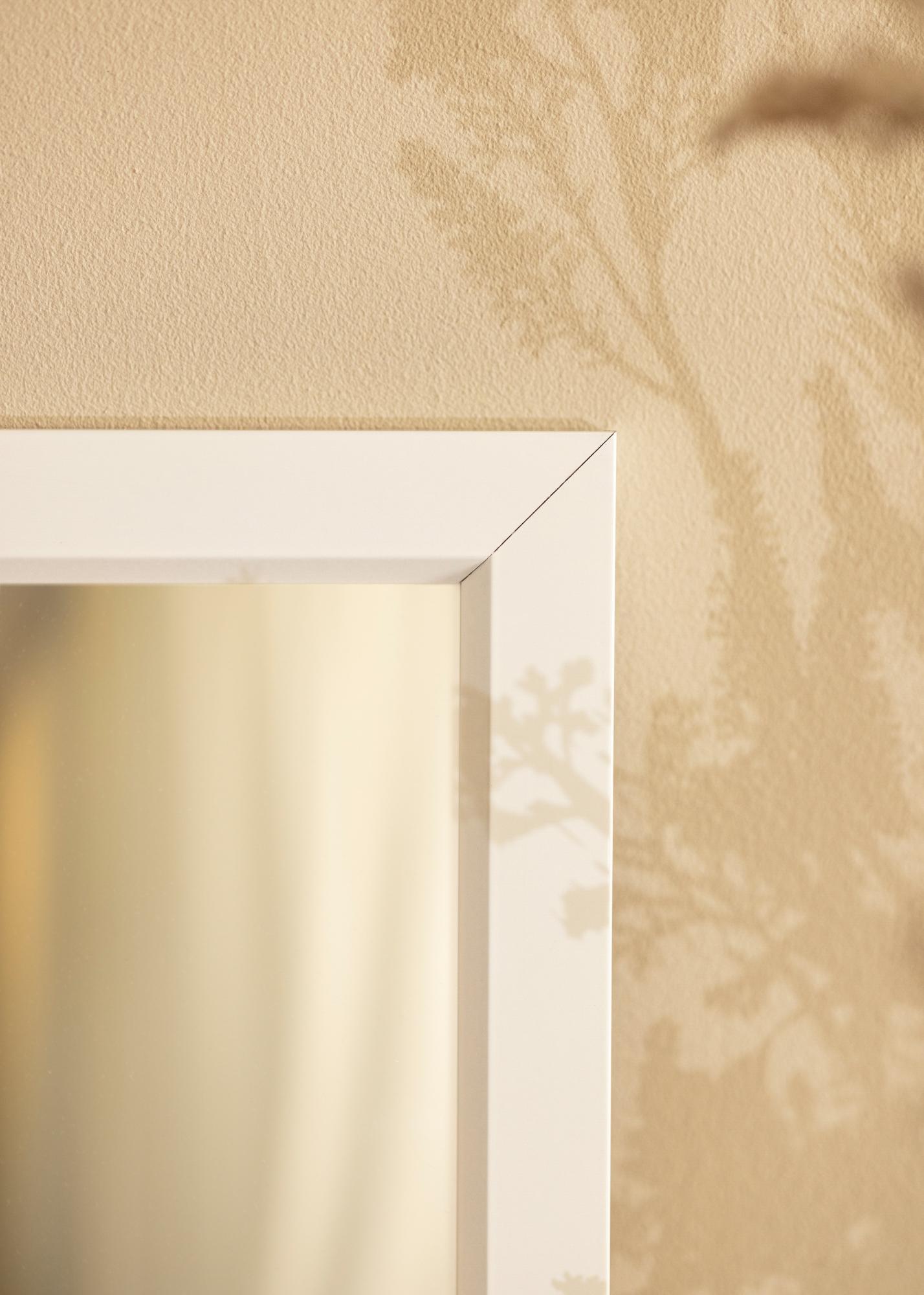 Schicker Spiegel mit einem schlichten weißen Rahmen aus Aluminium mit einer abgeschrägten inneren Kante. Durch den eleganten, schlanken Rahmen passt der Spiegel unabhängig vom Einrichtungsstil gut in jeden Raum deines Zuhauses, in Kombination mit einer hellen Einrichtung und einem Hauch von Minimalismus ist er jedoch besonders schön. Kombiniere den Spiegel mit grafischen Postern in weißen Rahmen an den Wänden und Glasobjekten als Dekorationen, um eine helle und luftige Note bei der Ausstattung zu erzeugen.
