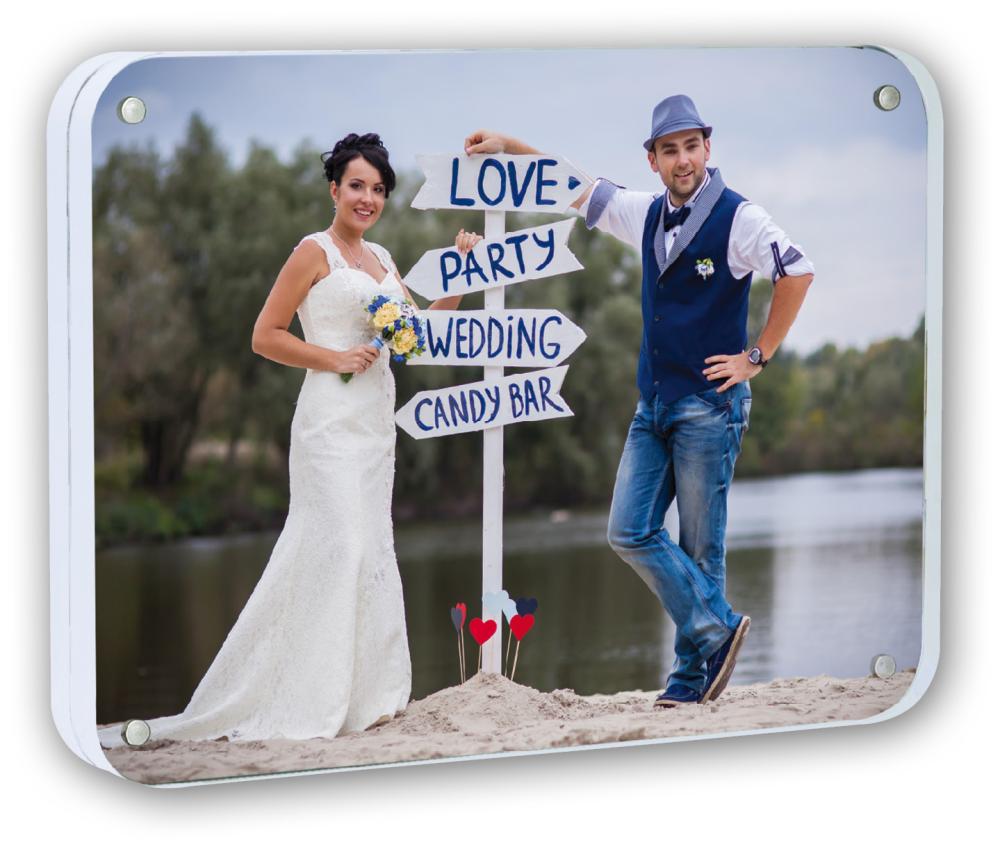 Einzigartiger doppelseitiger Fotorahmen, der aus zwei dicken Plexiglasplatten besteht, die magnetisch sind. Leg deine Bilder zwischen die Platten und setze sie dann zusammen. Einfacher könnte es nicht sein! Passt genauso gut auf ein Bücherregal wie auf einen Zimmertisch.
