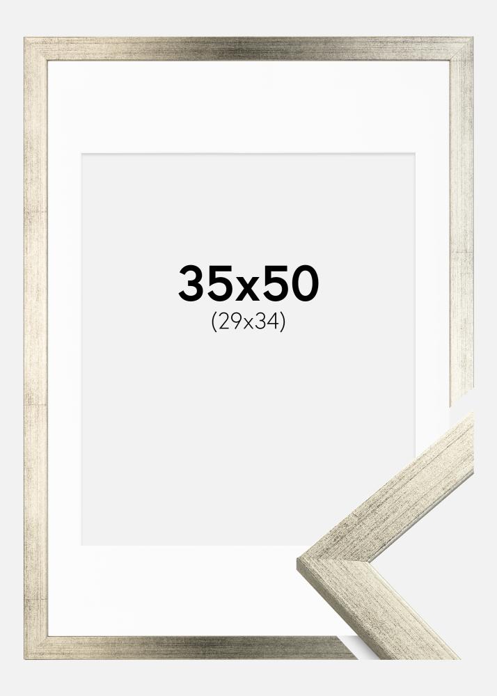 Rahmen Stilren Silber 35x50 cm - Passepartout Weiß 30x35 cm