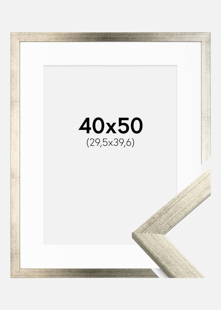 Rahmen Stilren Silber 40x50 cm - Passepartout Weiß 12x16 inches