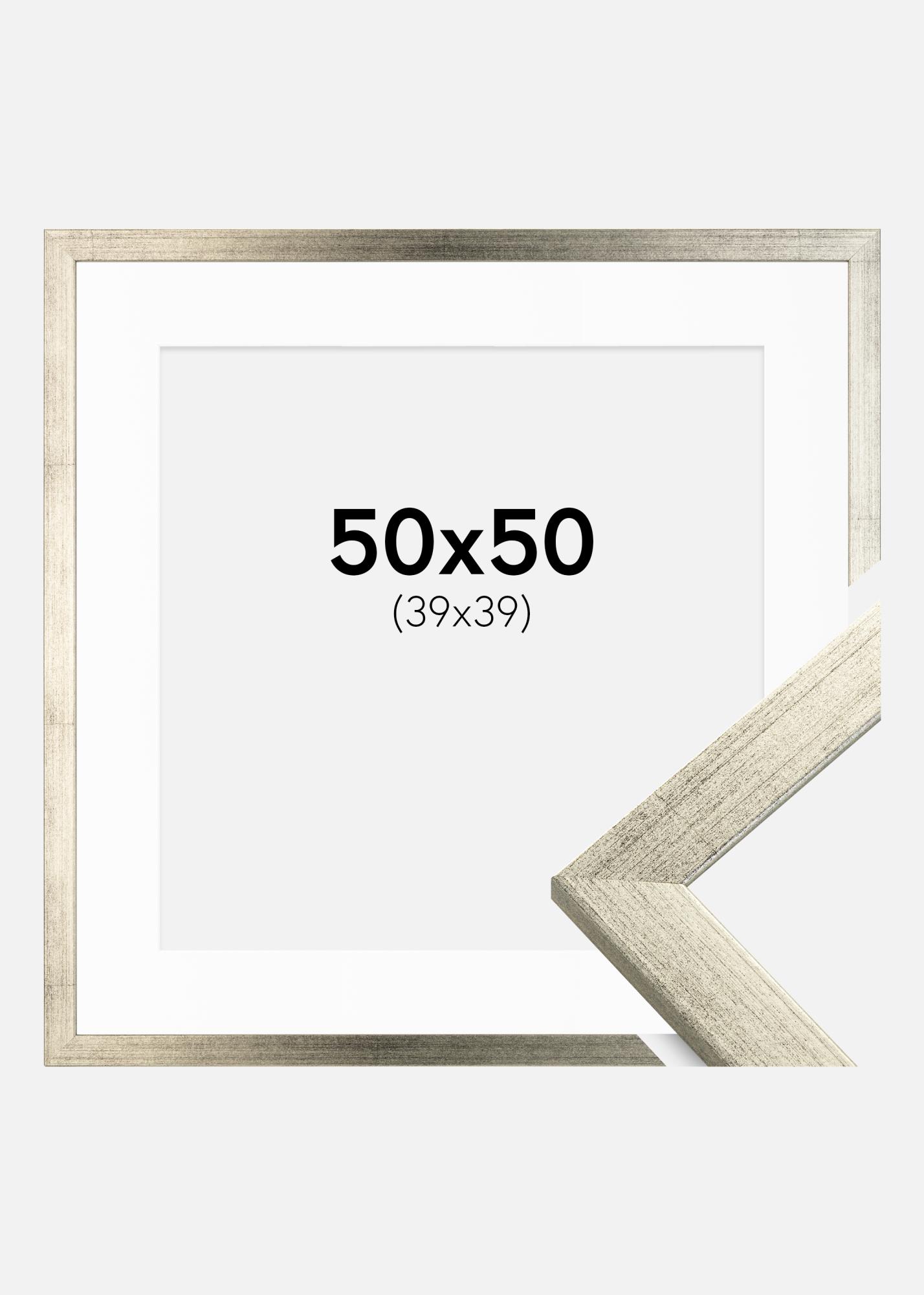 Rahmen Stilren Silber 50x50 cm - Passepartout Weiß 40x40 cm
