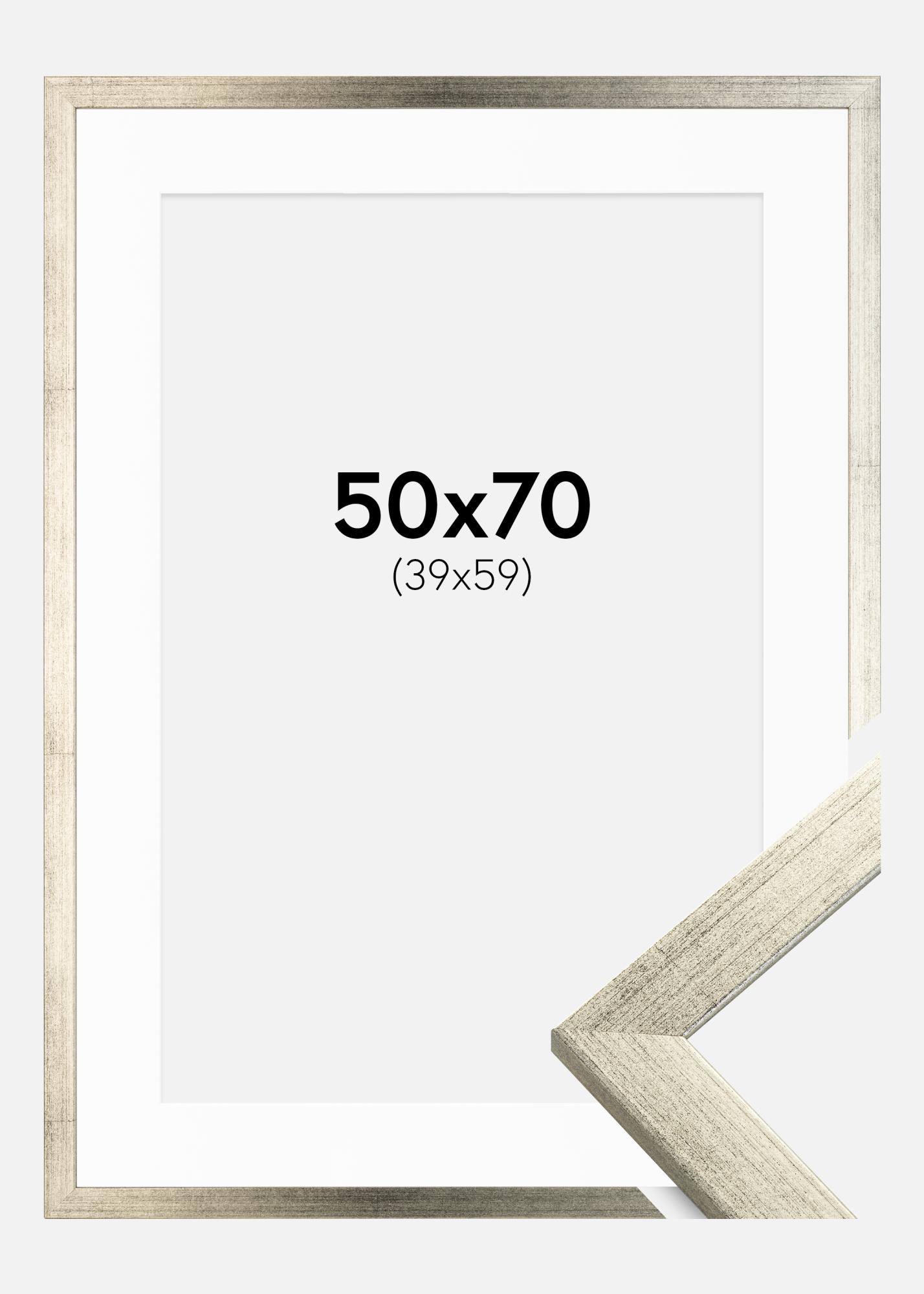 Rahmen Stilren Silber 50x70 cm - Passepartout Weiß 40x60 cm