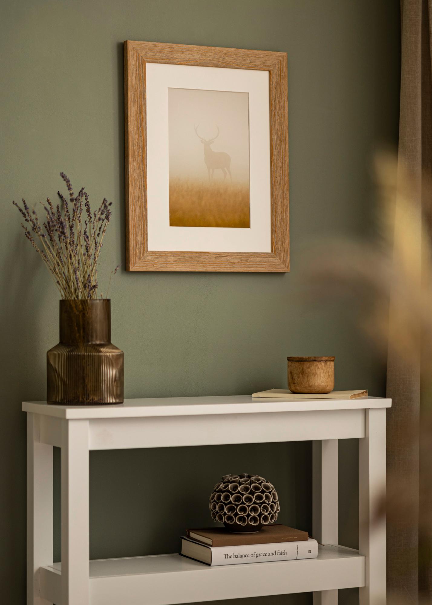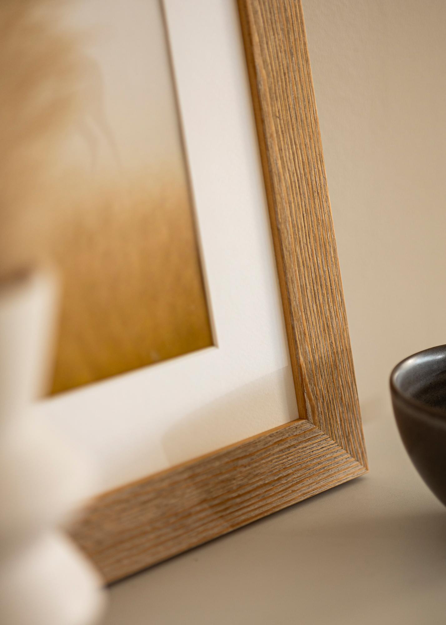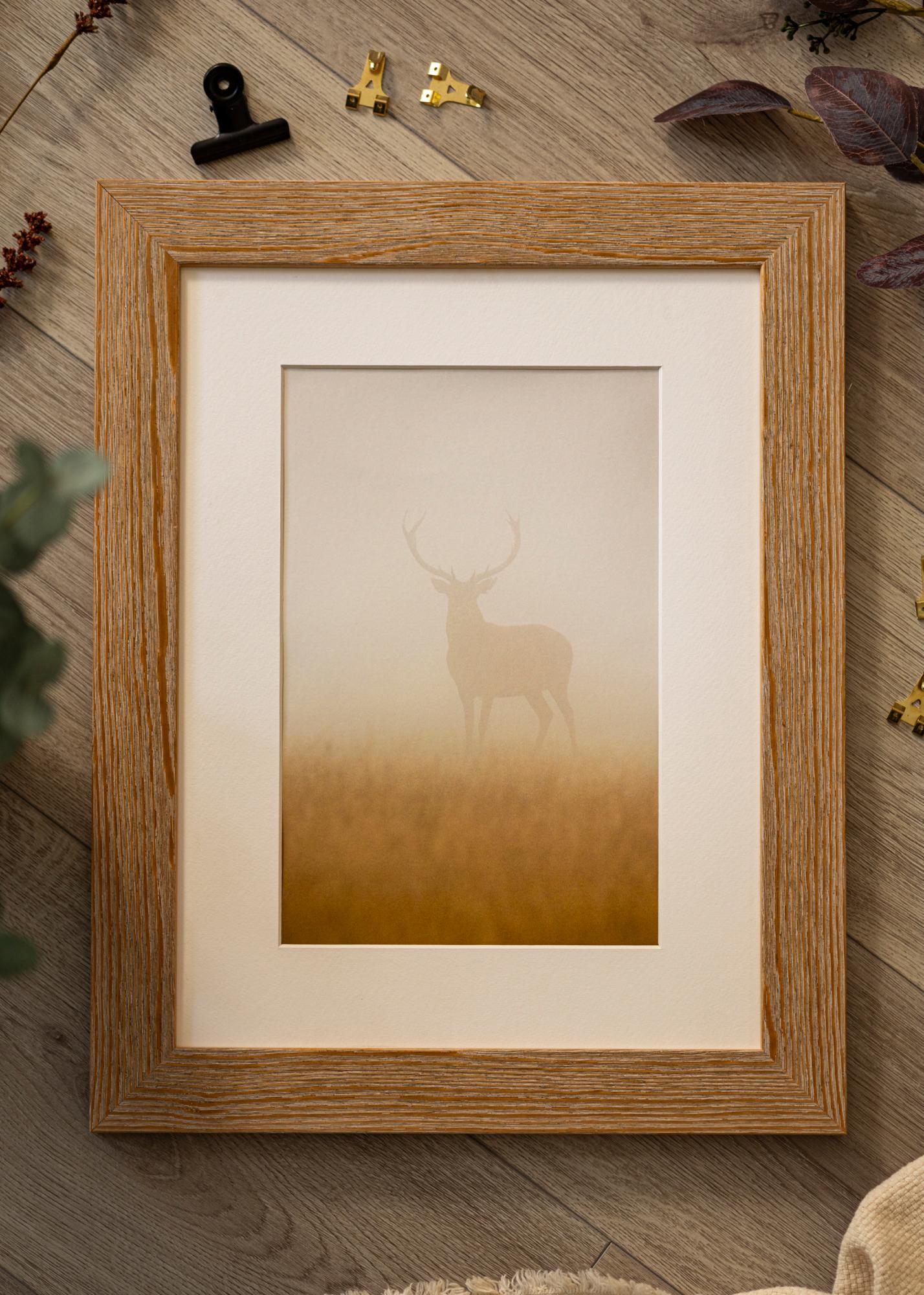 Klassischer Holzrahmen mit deutlicher Holzmaserung. Verleiht eine Note von Natur und Wildnis.
