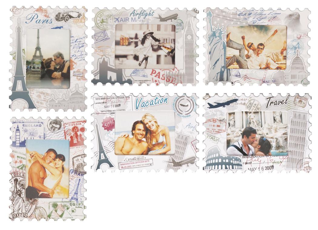 Der Bilderrahmen ist in sechs verschiedenen, von Reisen inspirierten Designs erhältlich. Gib bei deiner Bestellung einfach an, welche bestimmte Variante du erhalten möchtest.
