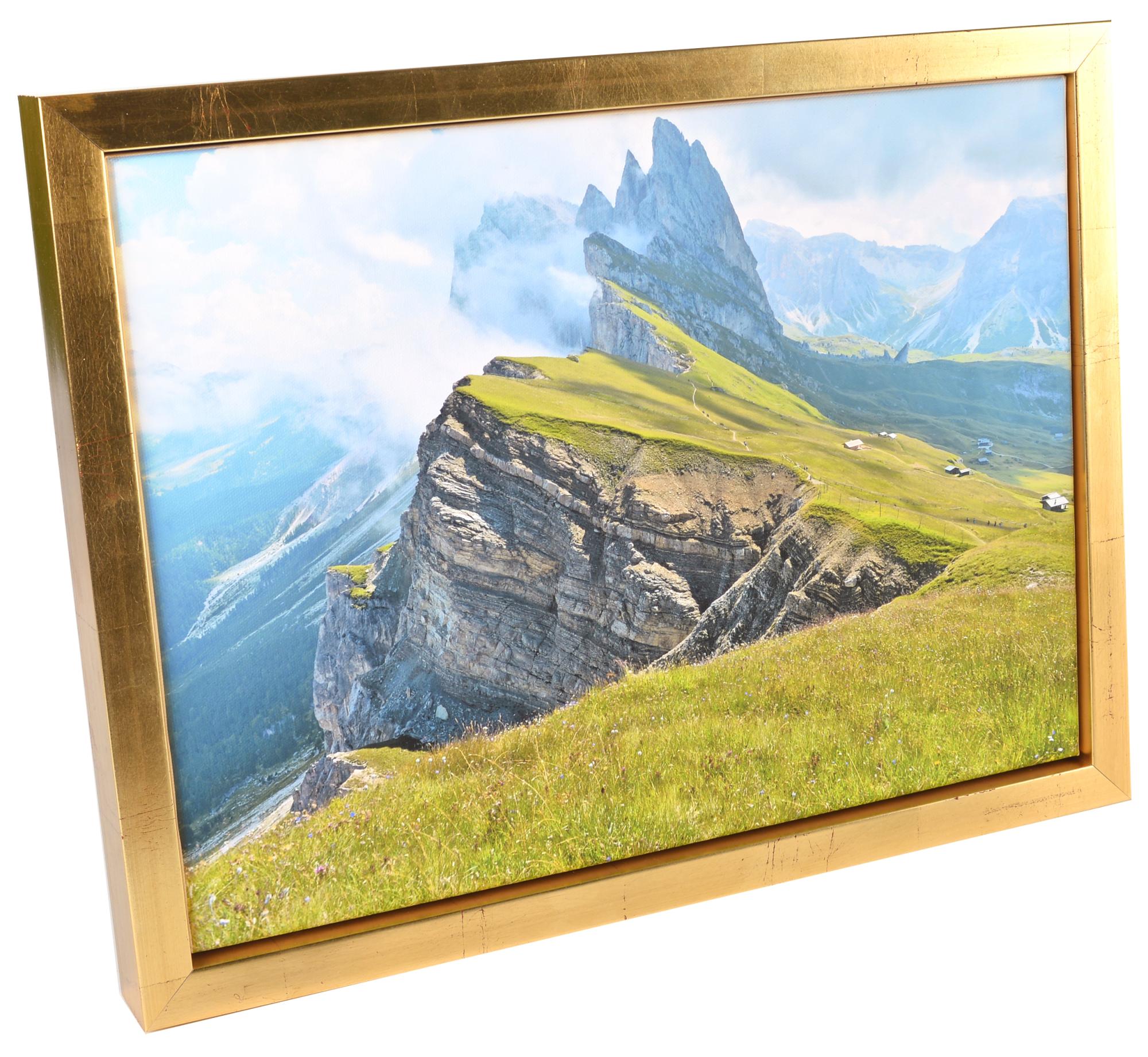 Västerås ist ein Canvas-Rahmen, der sich hervorragend für Objekte wie Leinwandbilder mit einer Tiefe von 20 bis 27 mm eignet. Mit seinem goldenen Profil verleiht „Västerås" deinem Bild eine elegante und glänzende Note.