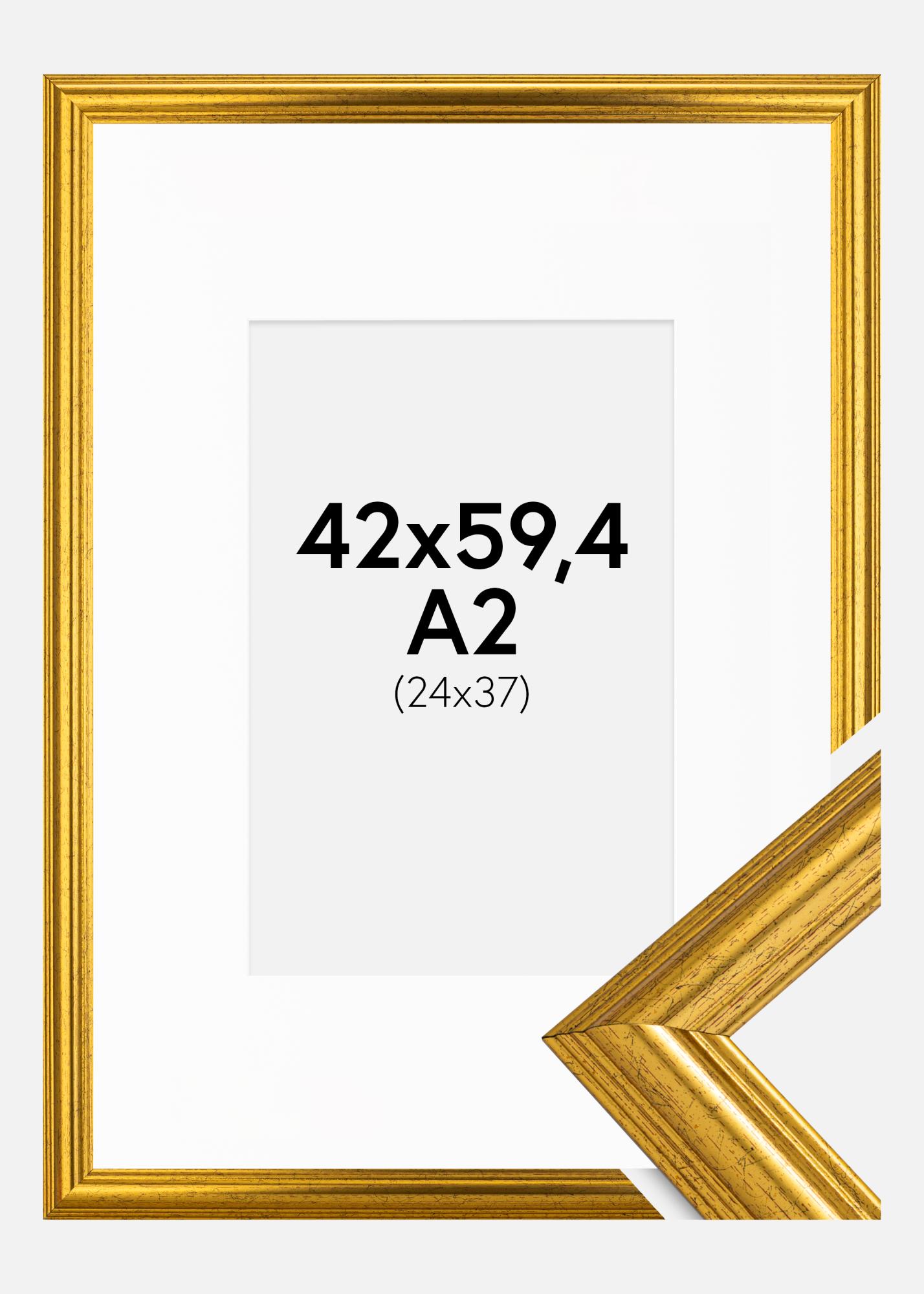Rahmen Västkusten Gold 42x59,4 cm (A2) - Passepartout Weiß 25x38 cm