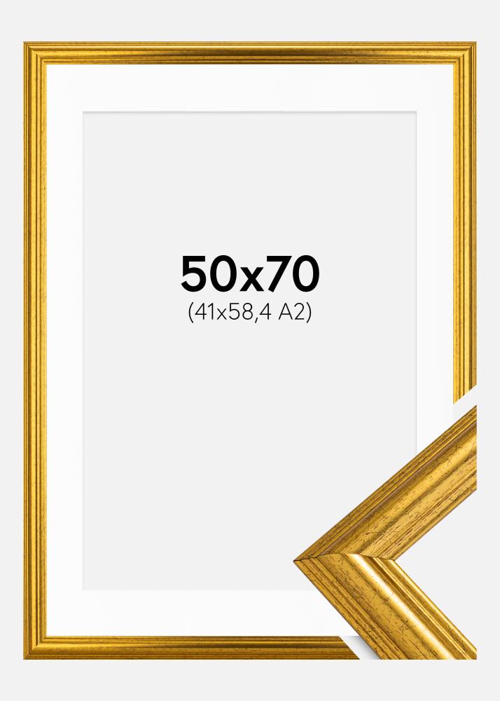 Rahmen Västkusten Gold 50x70 cm - Passepartout Weiß 42x59,4 cm (A2)