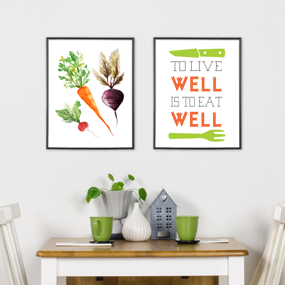 Grafischer Print mit einer schönen Illustration einer Radieschen, Karotte und Rote Beete. Das Poster ist ebenso attraktiv in der Küche aufzuhängen wie an einer Bildwand mit Gartenmotiven im Wohnzimmer oder vielleicht im Kinderzimmer über der Spielküche. Die stilreine Anmutung des Drucks sorgt dafür, dass er gut zu allen Einrichtungsstilen passt, von der Landhausküche bis zur Retroeinrichtung und in einem nordisch kühlen Stil. Ergänzen Sie es mit einem Bilderrahmen, der zur Einrichtung des Raumes passt, um ein ganzheitliches Ambiente in der Umgebung zu schaffen. Küchenposter werden oft sehr schön in Kombination mit silberfarbenen Bilderrahmen, die zur Spüle, Armaturen und anderen Metall Details passen, die üblicherweise in einer Küche zu finden sind.
