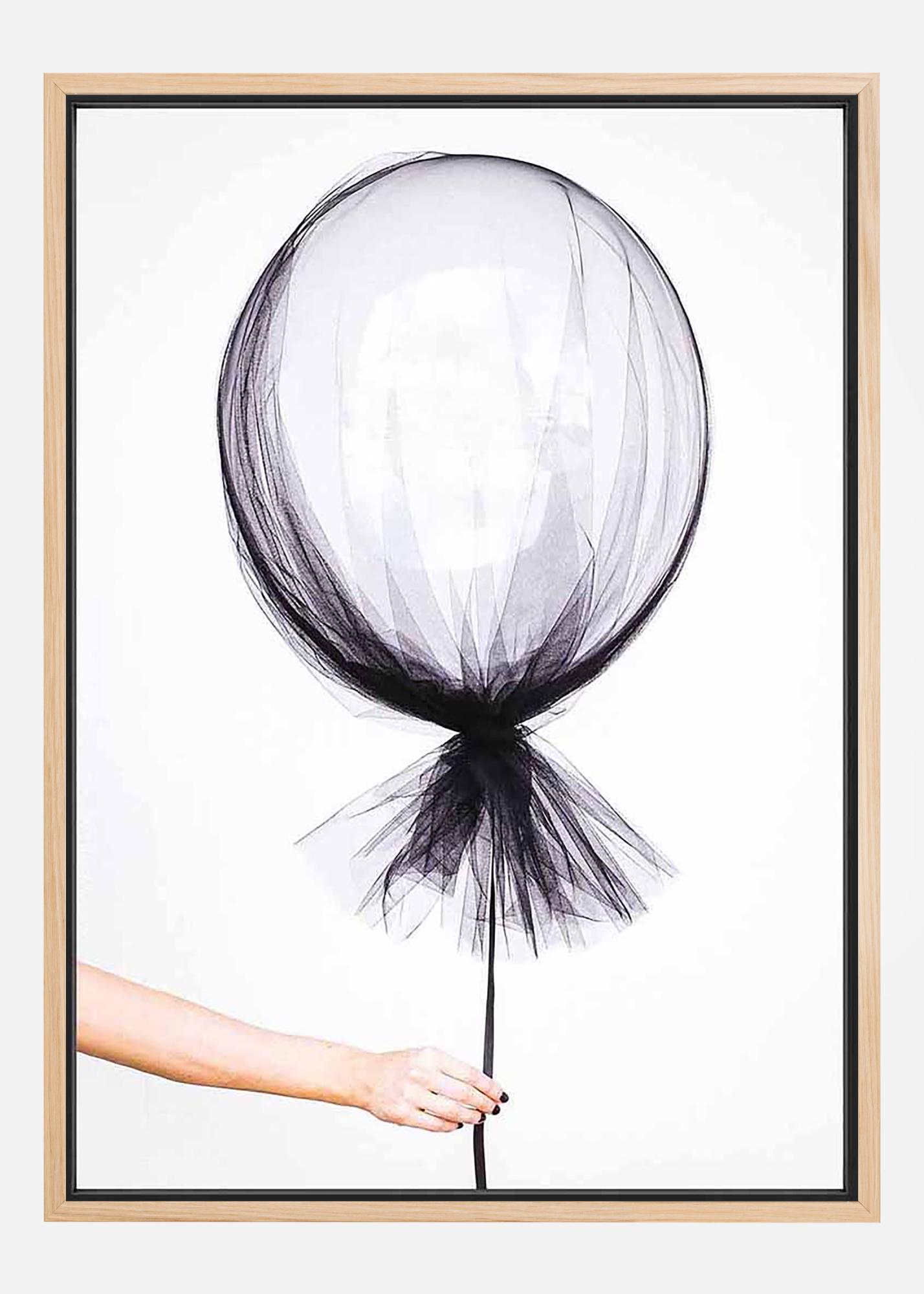 Stilvolle fotografische Kunst eines Händehaltens eines schwebenden Ballons, umhüllt in dünnem, durchsichtigem Stoff. Ein charmantes Poster, das eine herrliche Mischung aus spielerischer Leichtigkeit und zarter Zerbrechlichkeit ausstrahlt. Passt sowohl ins Kinderzimmer als auch in das moderne Zuhause.
